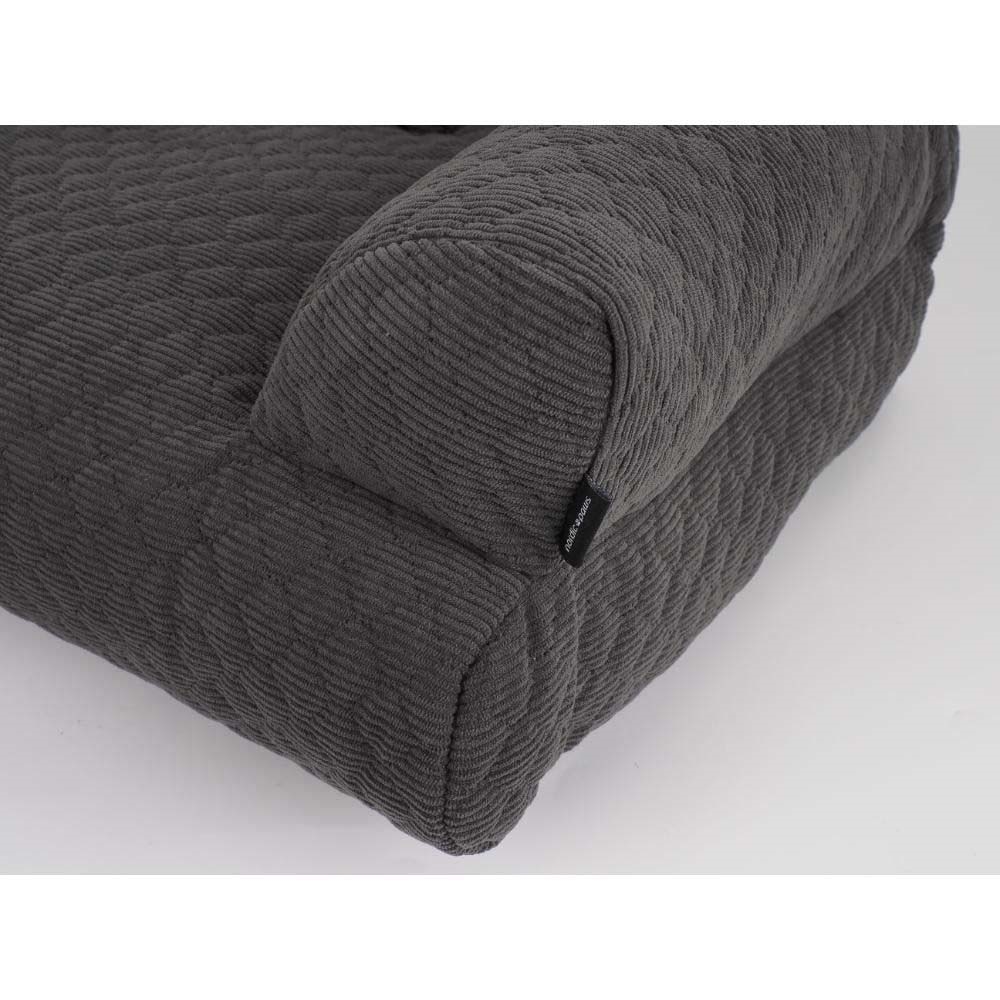 De höga kanterna fungerar som stöd och gör soffan extra mysig, medan den medföljande lilla kudden ger extra komfort.