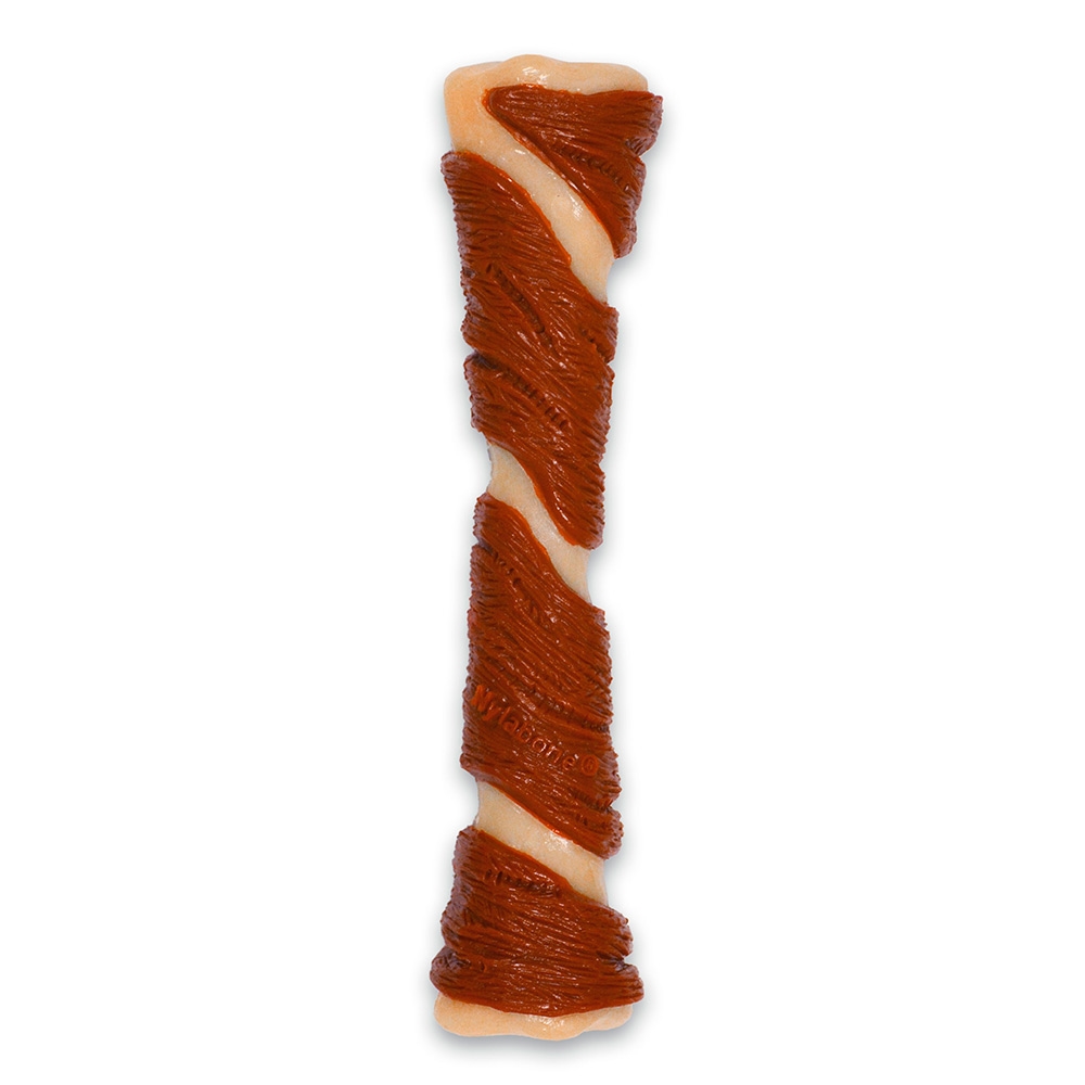 Detta tuggben har bacon och jordnötssmörsmak. Håll alltid ett öga på din hund när den tuggar på leksaker från Nylabone.