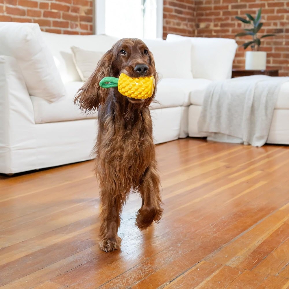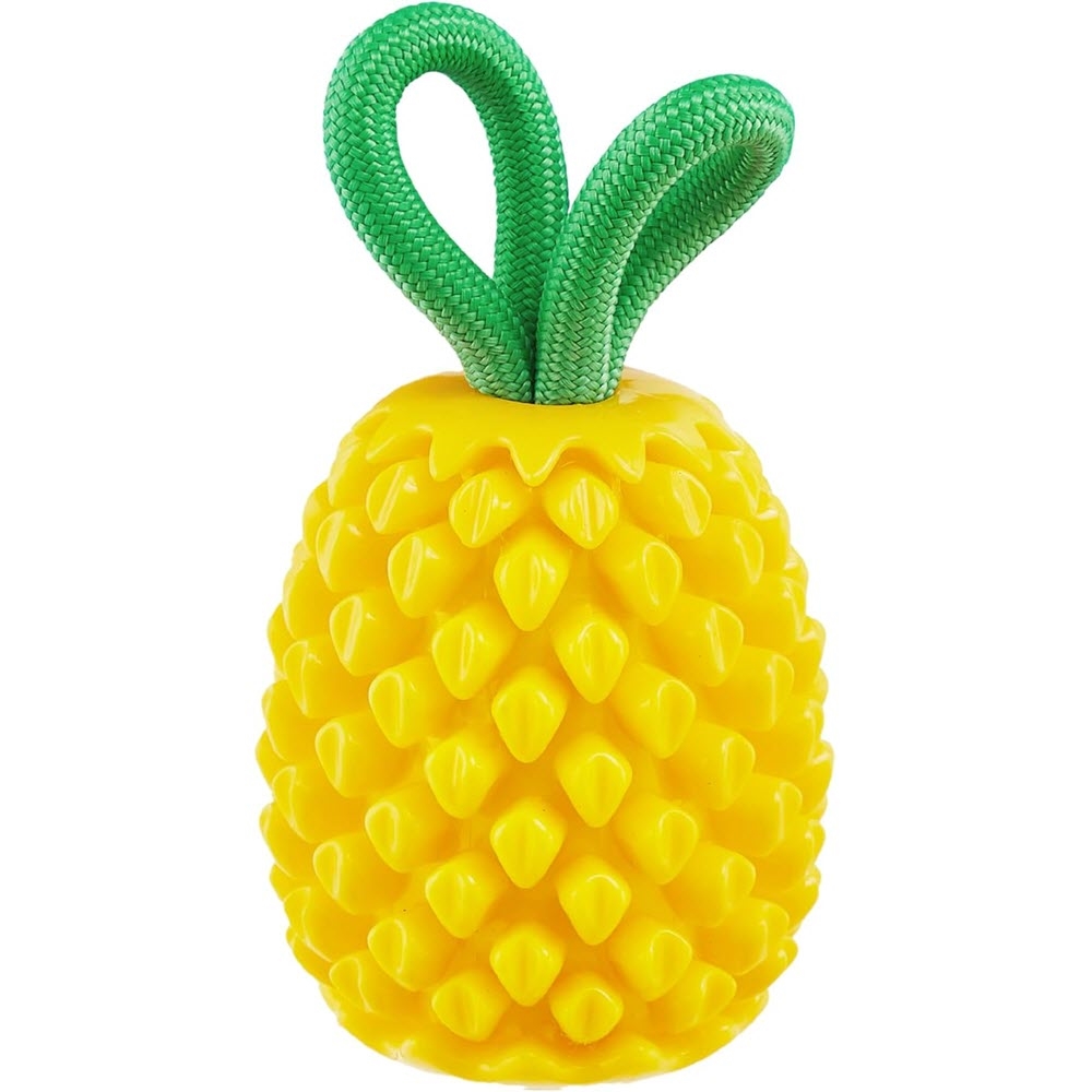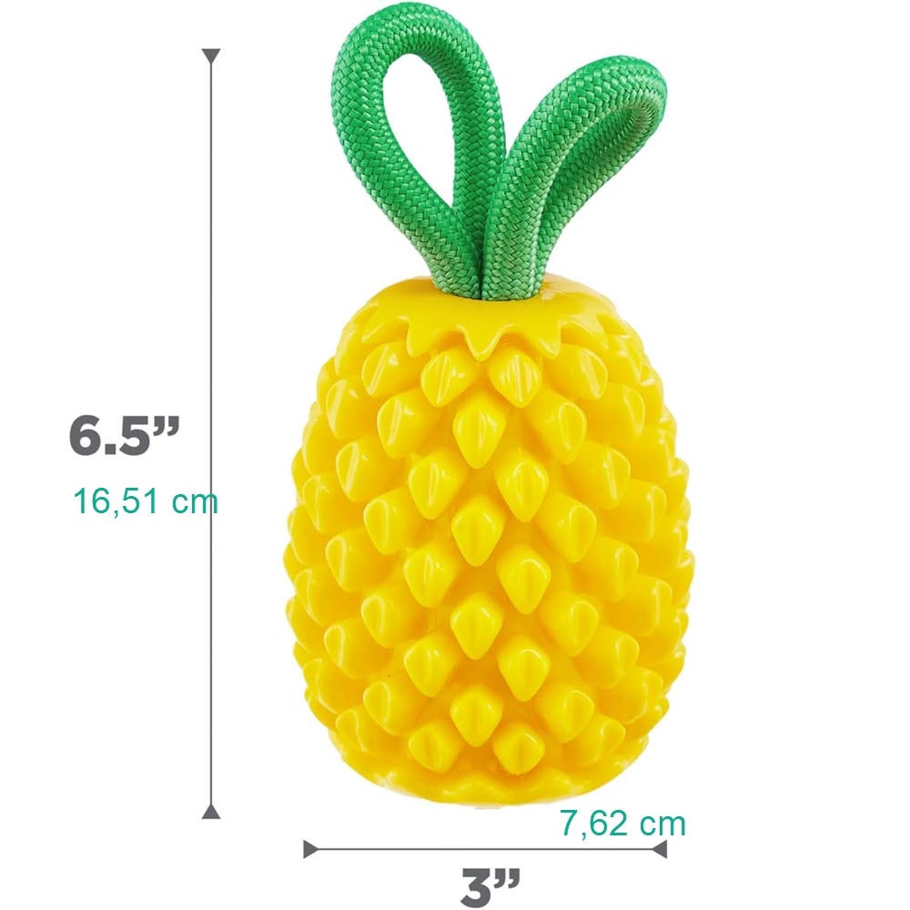 Ananasen har strategiskt designade räfflor och ett integrerat rep som hjälper till att rengöra tänderna medan din hund tuggar.
