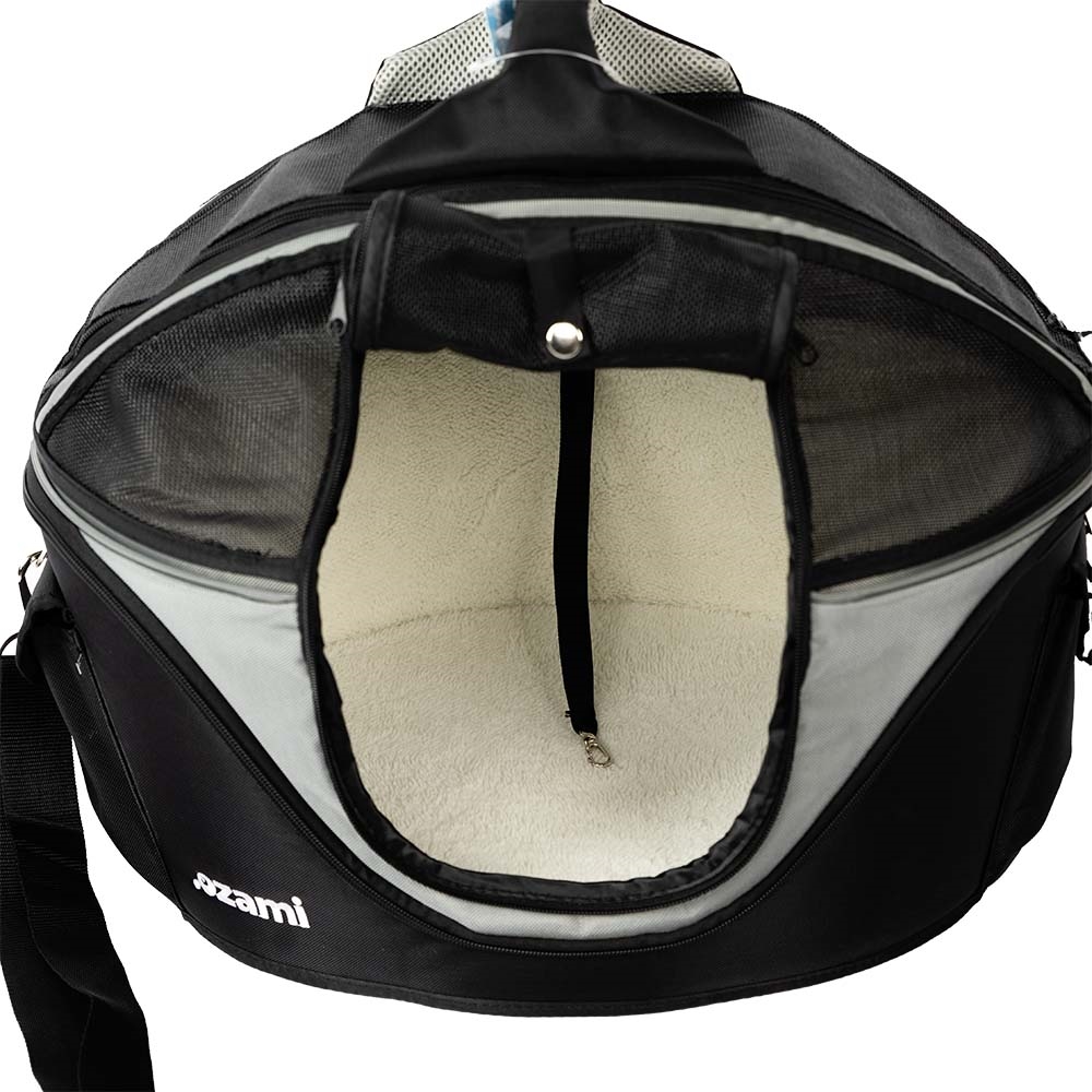 Med de praktiska dragkedjorna kan du snabbt omvandla väskan till en mysig säng med mjuk plysch inuti. Väskan har en ficka, så du kan ha med mindre nödvändigheter när du har din bästa vän med på språng.