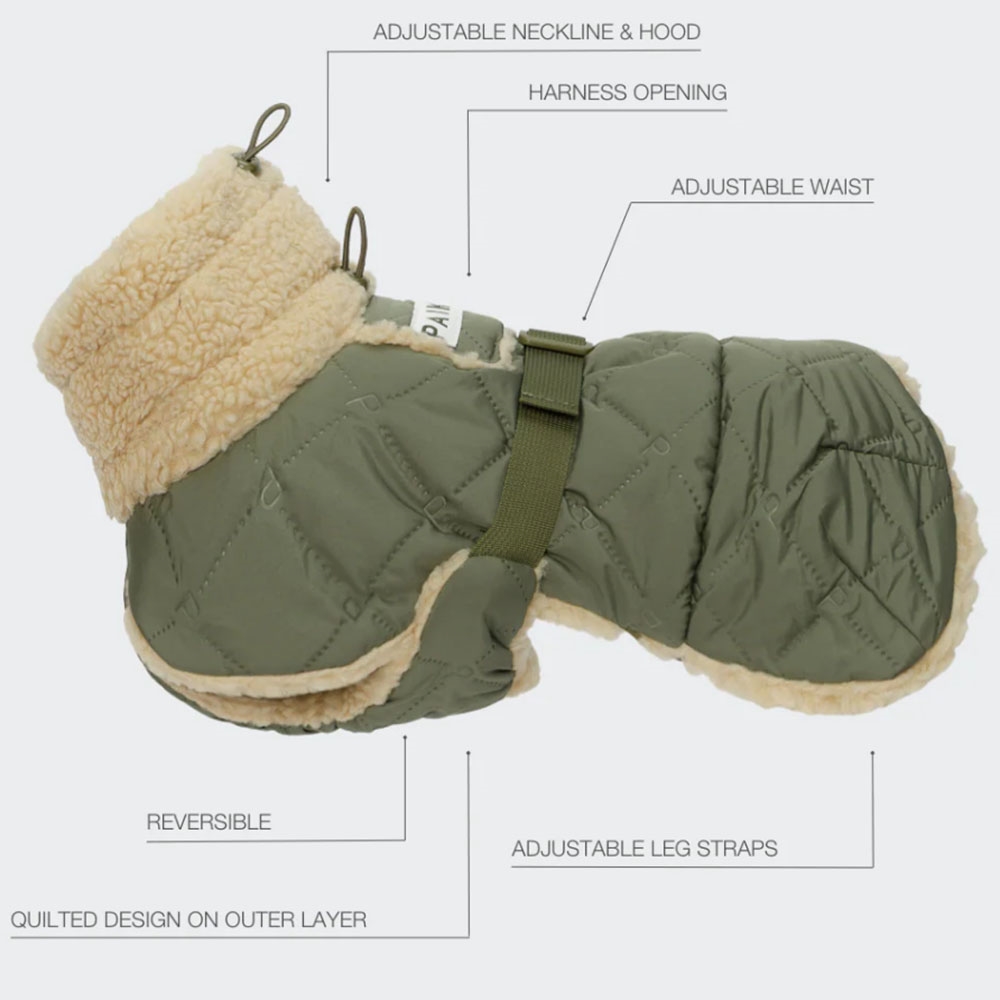 Paikka Quilted Sherpa Fleece Vinter Hundjacka Olive