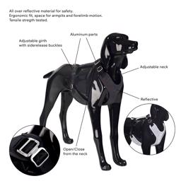 Om du behöver kan du också öppna selen runt halsen med ett aluminiumspänne. Det kan vara fördelaktigt för hundar som inte gillar att få något över huvudet.