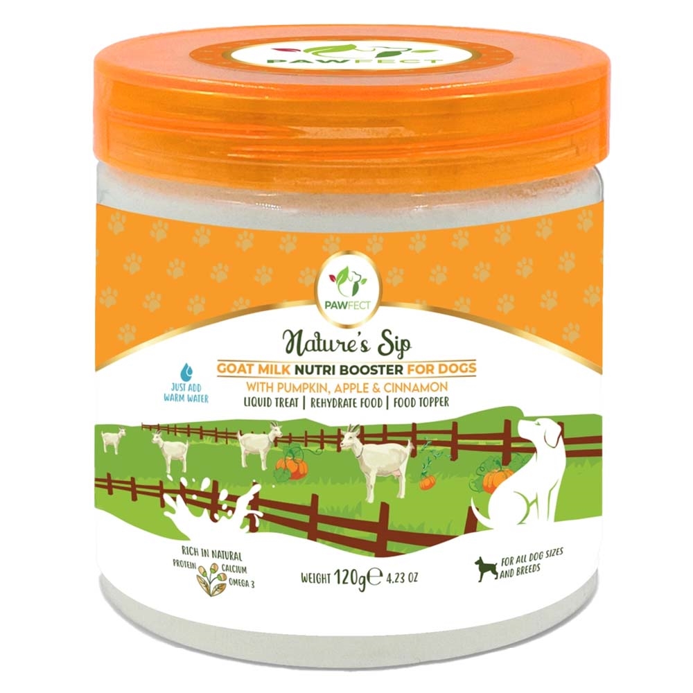 Denna getmjölk från Pawfect är ett 100% naturligt kosttillskott för hundar, berikat med pumpa, pumpafrön, äpple och kanel. Pulvret är lättlösligt i vatten och kan användas på flera sätt - antingen som en läcker dryck, hällt över fodret för att göra det mer vått, eller strött direkt över maten.