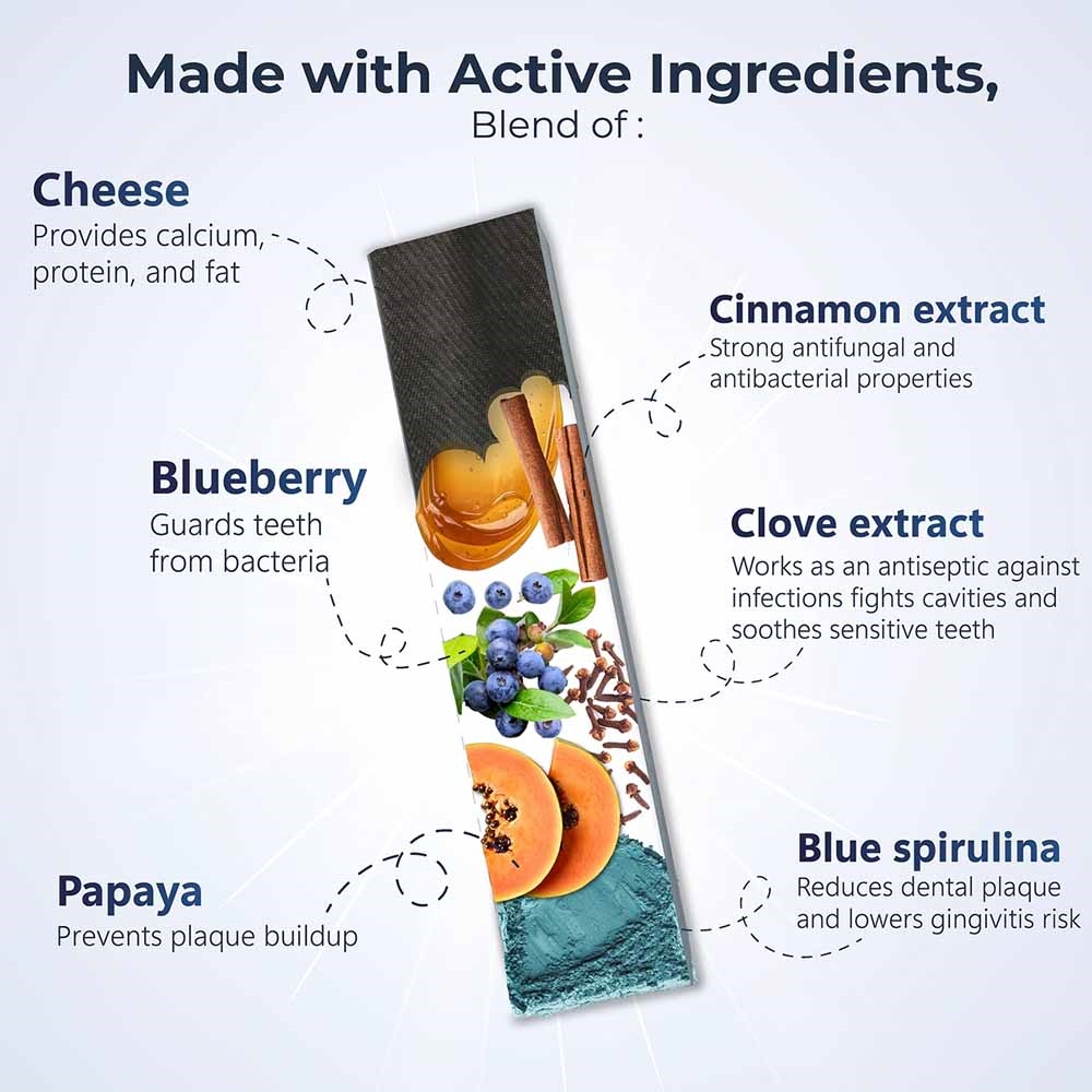 Stödjer tandhygien - Minskar naturligt plack och tandsten genom tuggaktivitet.