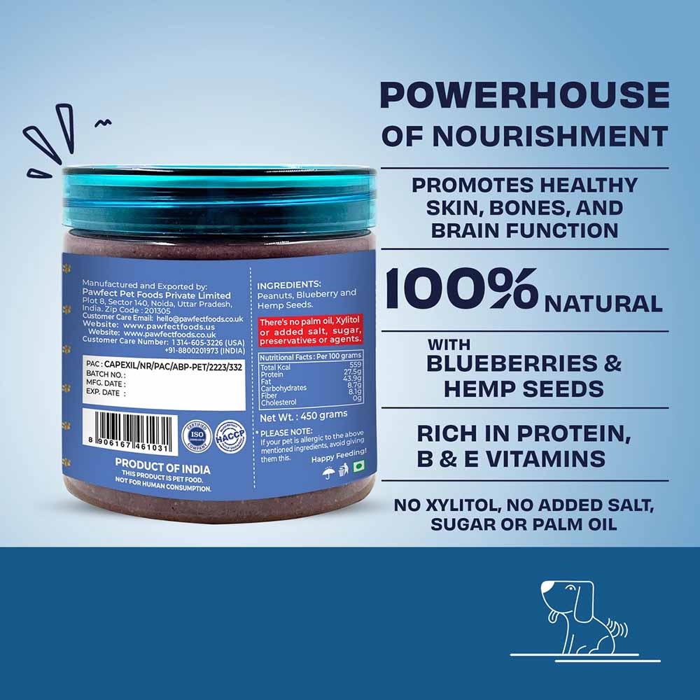 Pawfect Peanut Butter Blueberry & Hemp Seeds 450g