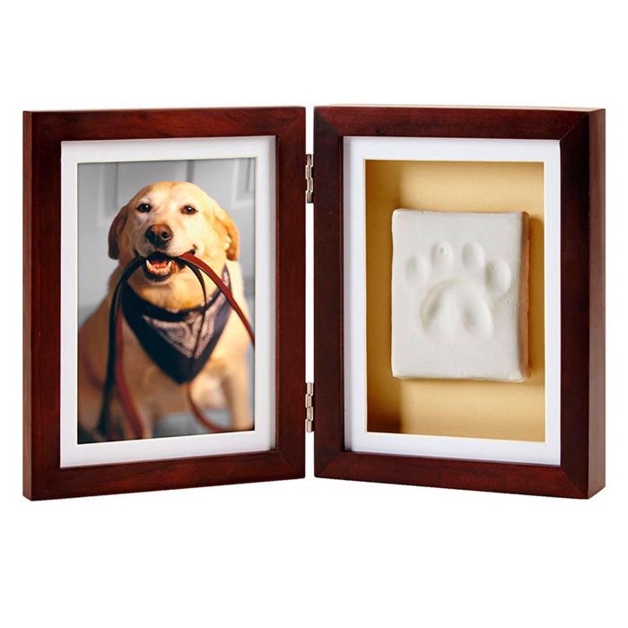 Vad är sötare än att ha en ram stående hemma med en bild av din bästa vän, tillsammans med det finaste tassavtrycket. Här får du en fotoram som är avsedd att stå, tillsammans med ett kit så att du kan göra ett fint avtryck av din hunds eller katts tassavtryck.