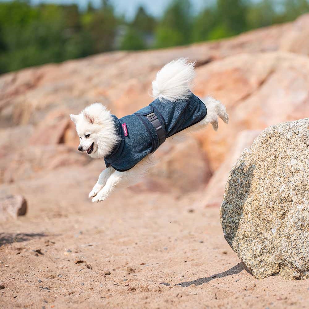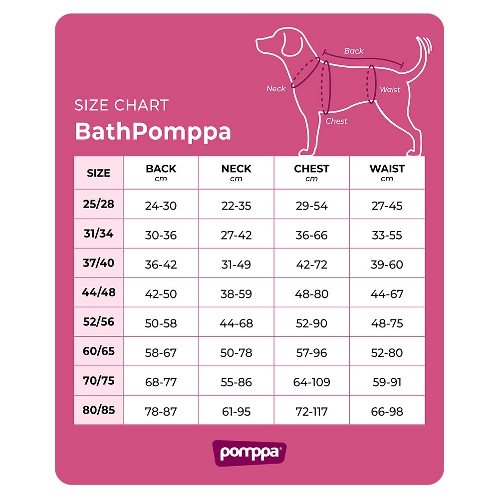BathPomppa är ett oumbärligt hjälpmedel för aktiva hundar – oavsett om du är hemma, i bilen, under träning eller på väg till stranden! Torkdräkten hjälper till att påskynda torkprocessen och håller din hund varm och bekväm efter blöta aktiviteter.