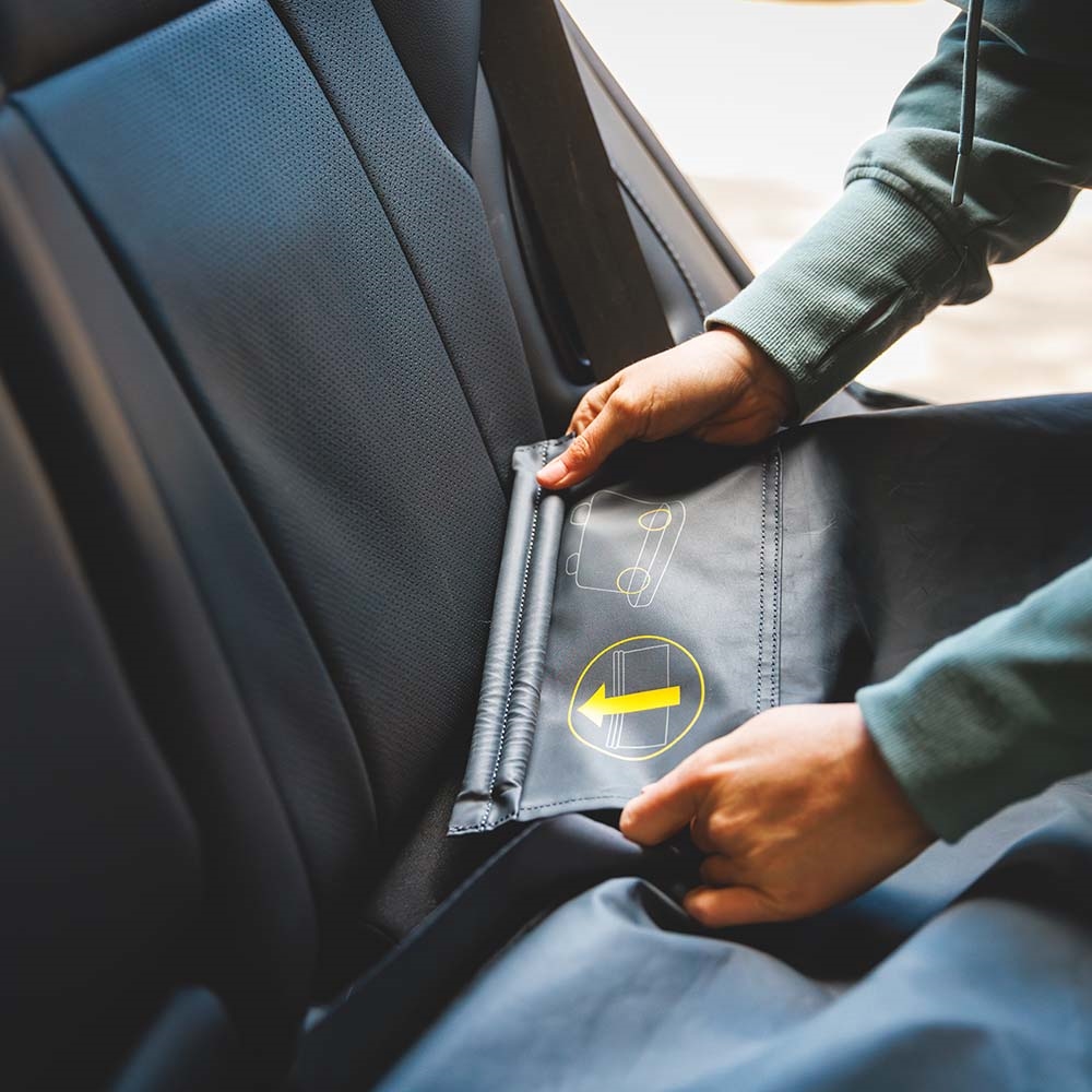 Smart vattentätt överdrag som skyddar bilens baksäte. Lätt att hantera och rengöra.