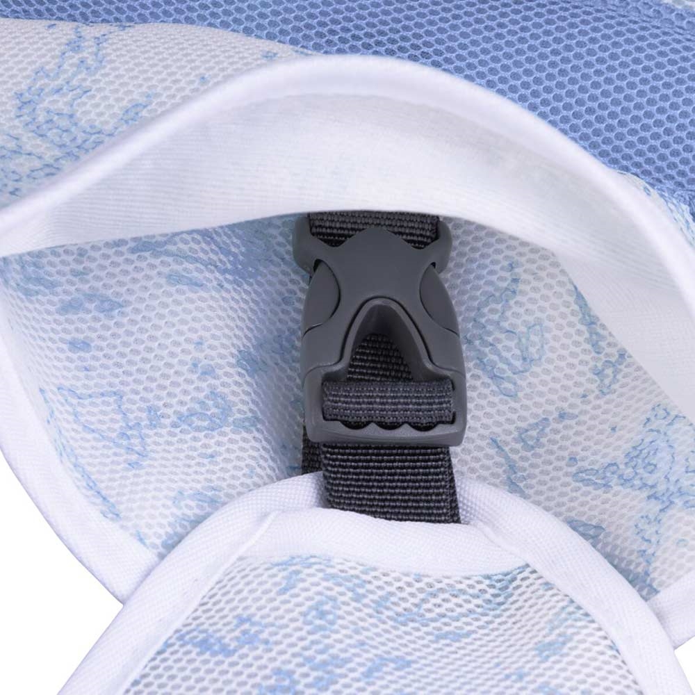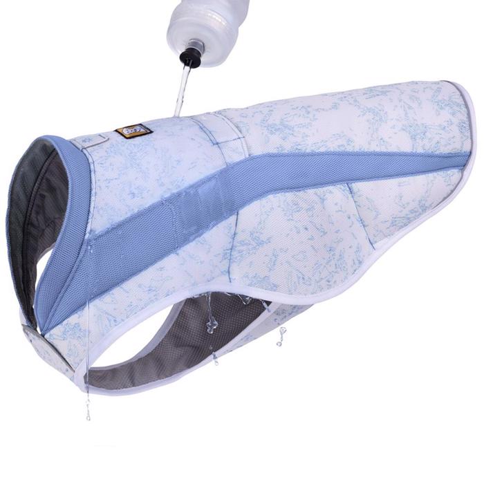 Ruffwear Swamp Cooler hundvästen är en fantastisk lösning för hundar som vistas i solen på en varm sommardag. Västen kan bidra till att både reflektera bort solen och samtidigt kyla hunden. Den är lätt att dra över huvudet på hunden och stängs sedan enkelt med 2 snabbspännen. Det finns ett hål på ryggen så att din hund kan ha en sele under västen.