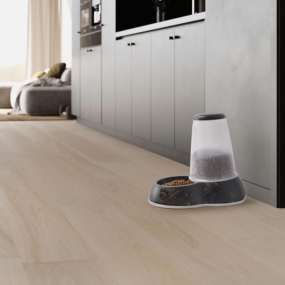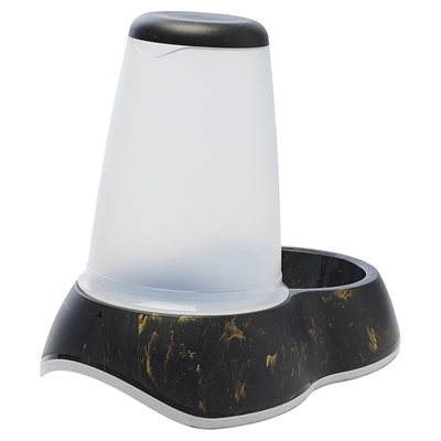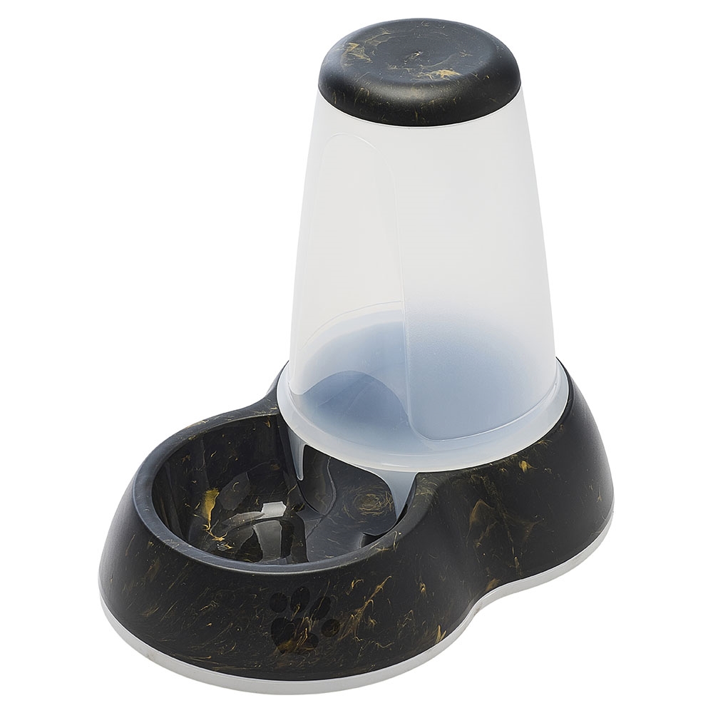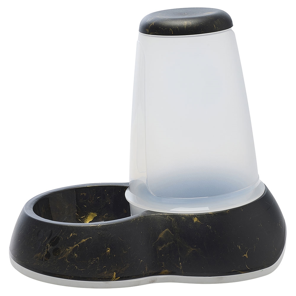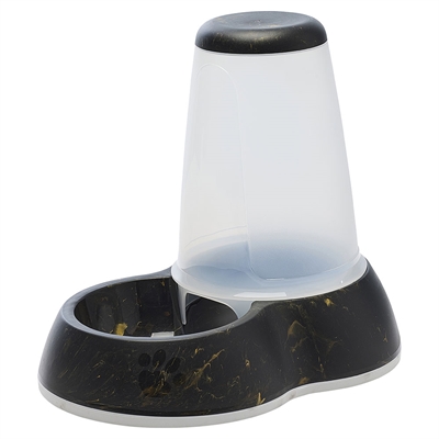 Modern foderautomat med stilfull marmorlook som passar in i alla hem. Lämplig för katter och små hundar.