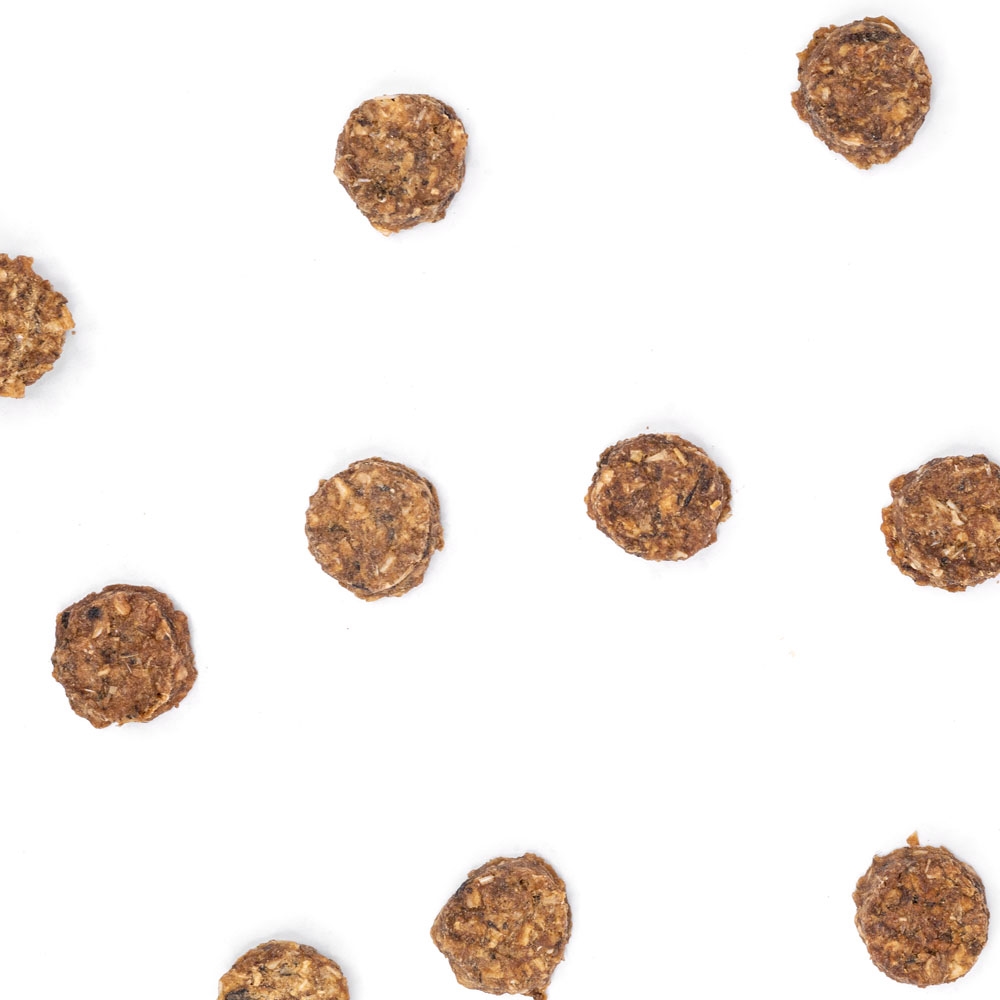 Välsmakande kompletteringsfoder för hundar tillverkat av 30% lax och 70% torsk. Ett naturligt snacks med hög proteinkvalitet.