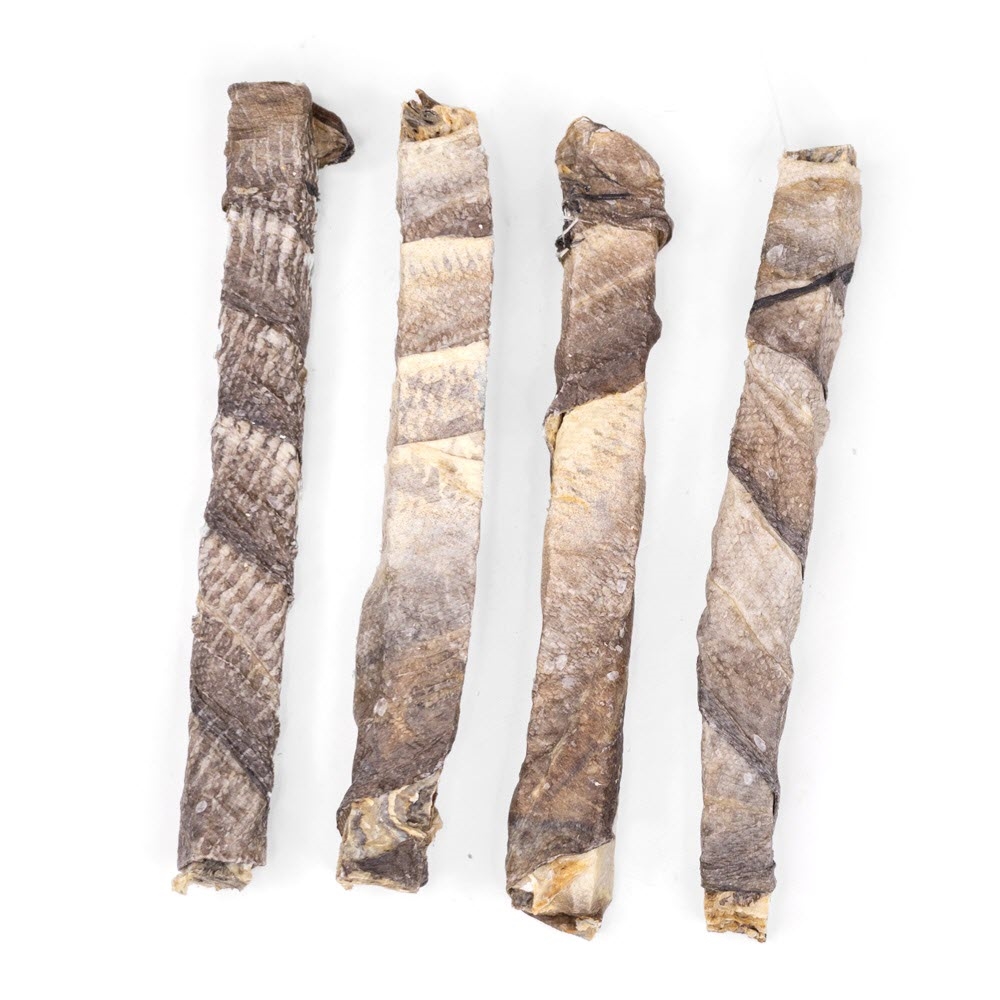 Läckra tuggstänger gjorda av 100% torskeskinn. 200 gram i påsen.