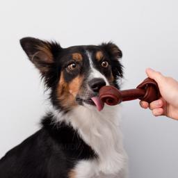 Torkade Oxöron med kött på till de bortskämda hundarna