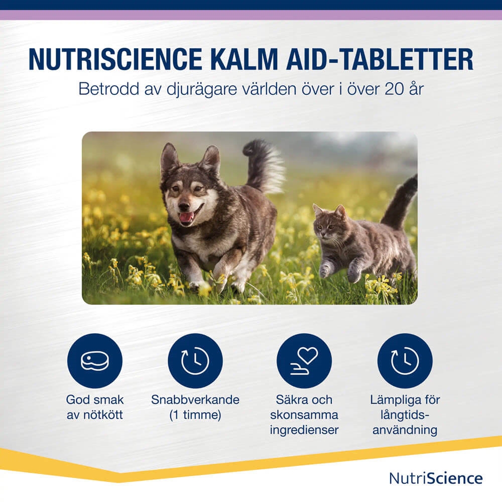 KalmAid är ett L-tryptofanbaserat fodertillskott som hjälper till att lugna mindre djur i perioder av stress och ångest. Stress och ångest hos hundar kan till exempel uppstå när de är separerade, i främmande eller bullriga miljöer och vid närvaro av fyrverkerier.