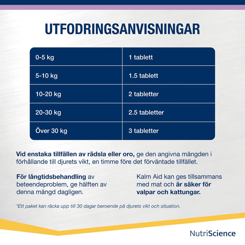 Rekommenderat: ge det till hunden eller katten 1-2 timmar innan den utsätts för utmaningen som ger ångest, nervositet eller stress. Inför en nyårsafton bör du börja några dagar innan.