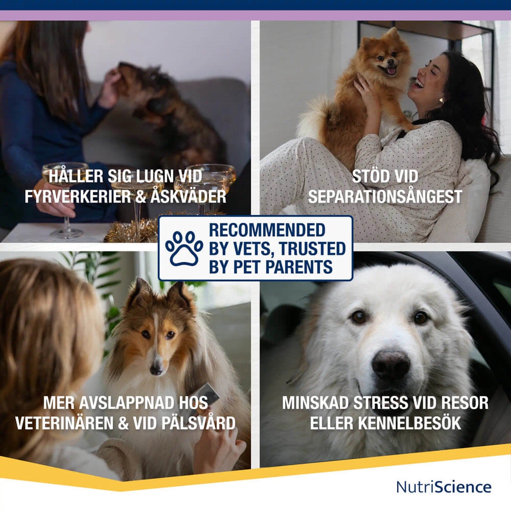 Fodertillskott i flytande form som hjälper till att lugna hunden eller katten under perioder av stress och ångest.