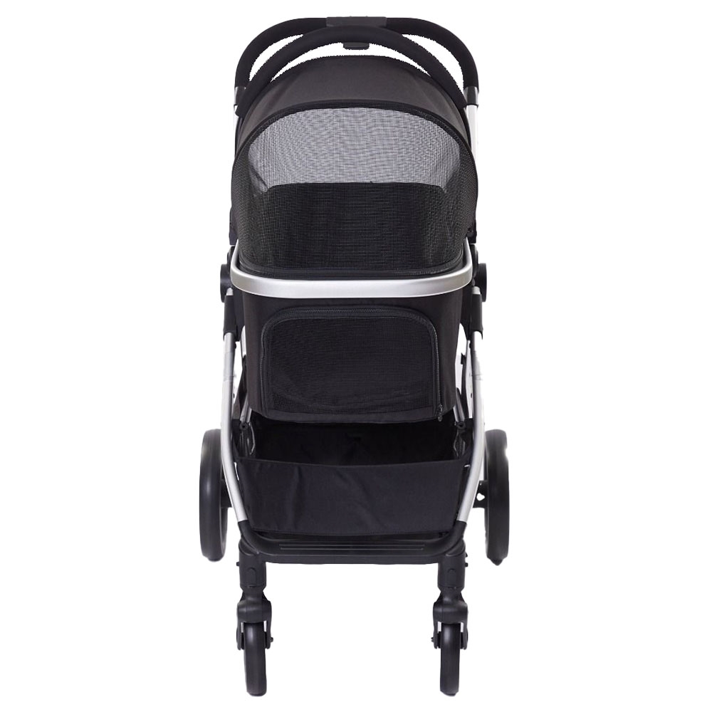 Denna sportiga hundvagn är lämplig för större hundar. Faktiskt upp till 20 kg. Att hundvagnen har 4 stora solida hjul gör att vagnen är bekväm och bra att gå med för dig och din hund.