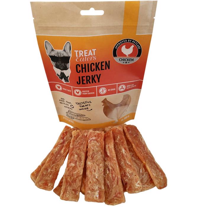 Chicken jerky är spannmålsfri och tillsatt med kycklingbröstfilé av bästa kvalitet.