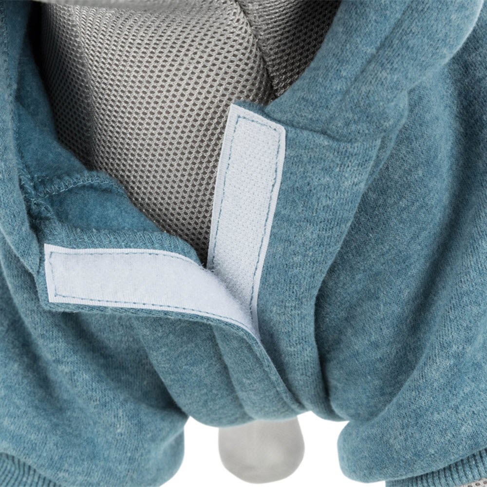 Denna vackra petroleumfärgade hoodie är otroligt bedårande för både små och stora hundar. Tröjan stängs under bröstet och under magen med kardborre. Tröjan är designad med en söt huva med tryckknapp, så den kan sitta fast eller hänga löst. På baksidan av tröjan finns ryggfickor och på den bakre delen av tröjan är ett sött vitt ankare tryckt.