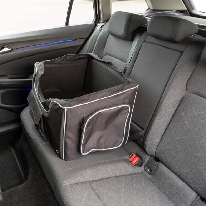 Riktigt smart bilstolsväska för din lilla hund. Formstabil och med rem för att fästa hunden.