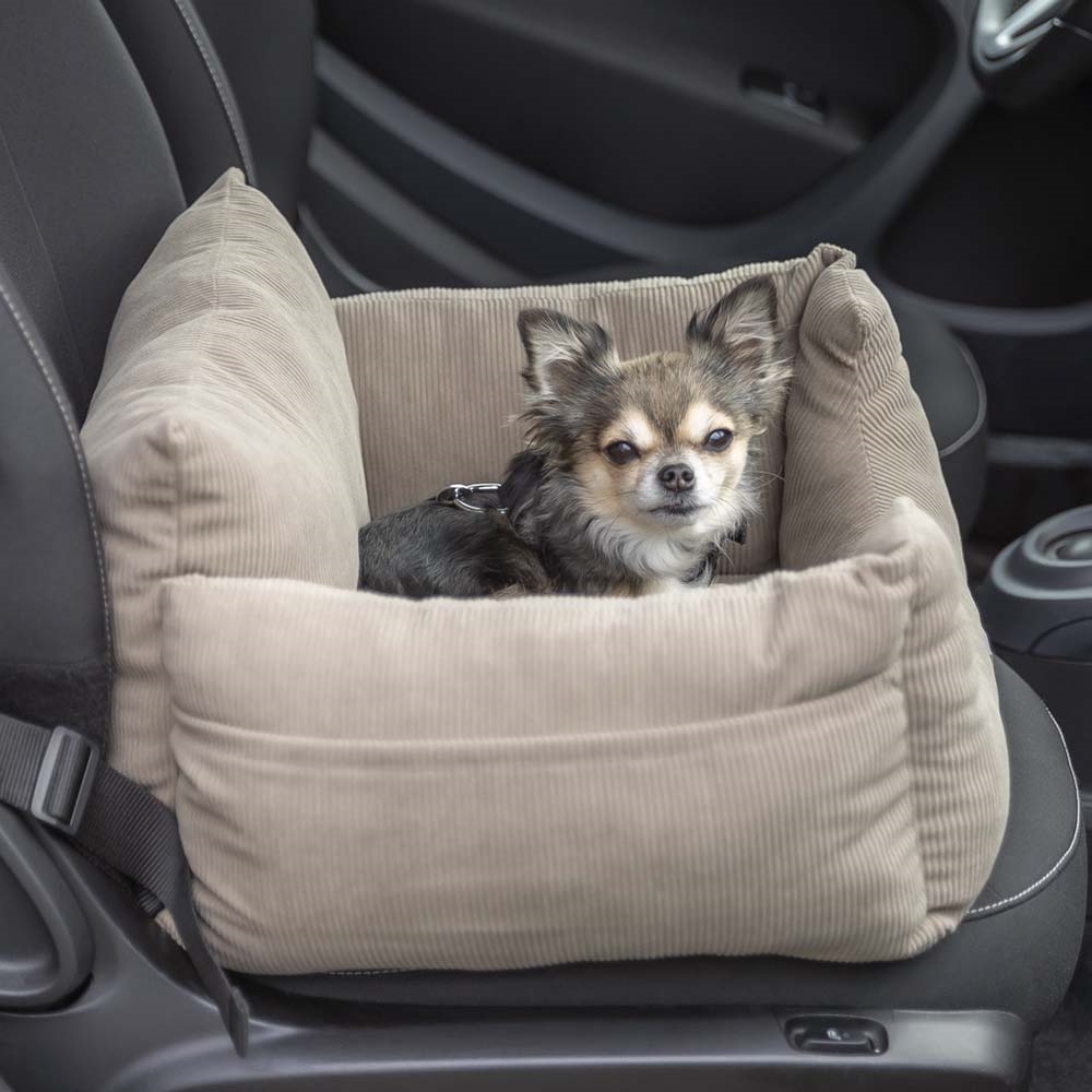 Härligt mjuk bilbarnstol för den lilla och medelstora hunden. Sätet har en snygg sammetlook.