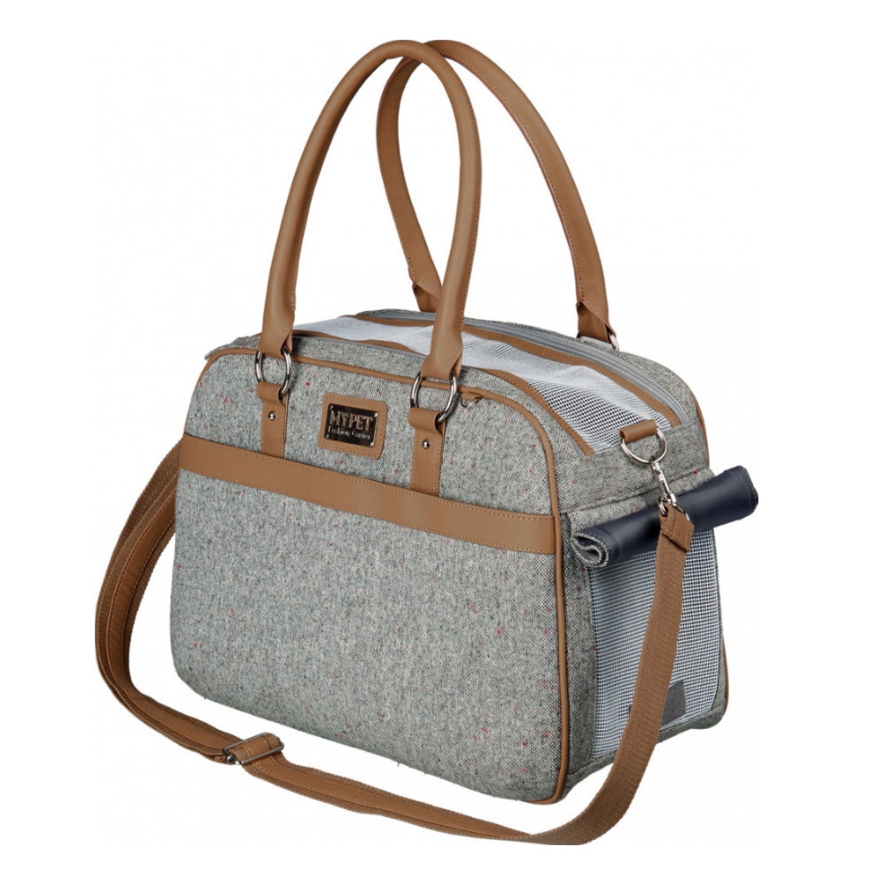 Om du gillar design och klassiskt utseende är denna hundväska något för dig. Väskan är tillverkad i vävt tyg med pu-läder. Invändigt är den praktisk med polyesterfoder.
