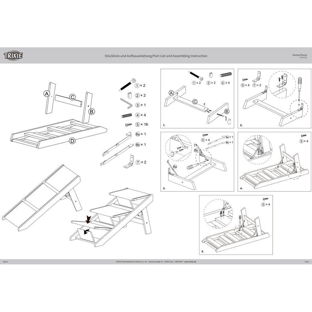 Denna hundramp från märket Trixie används för att hjälpa hundar att komma upp på högre ytor utan att belasta deras leder. Denna hundramp kan göras om, så att den kan användas som en hundtrappa istället.