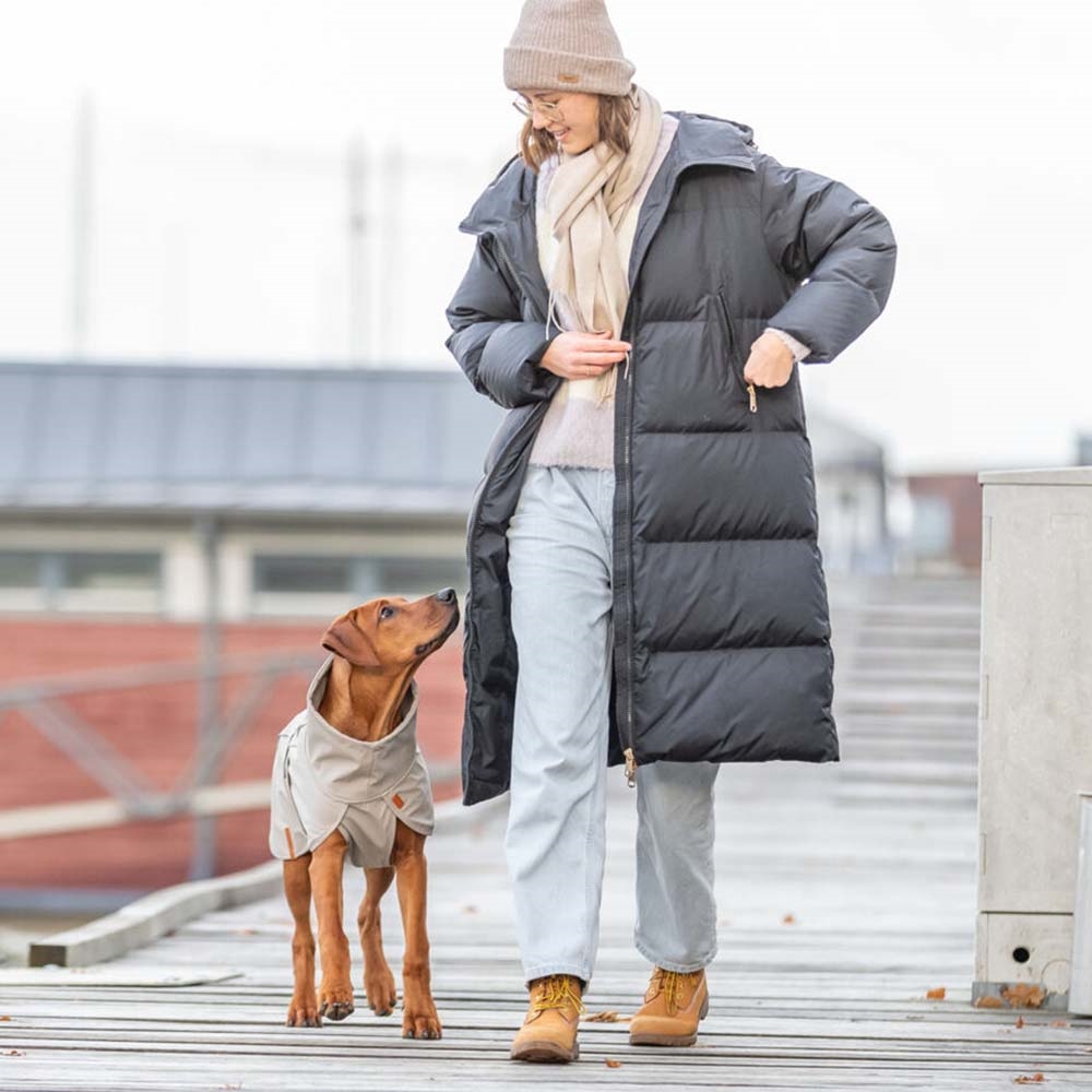 Jackan är både vind- och vattentät, så den håller din hund torr och varm på en regnig promenad.