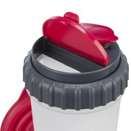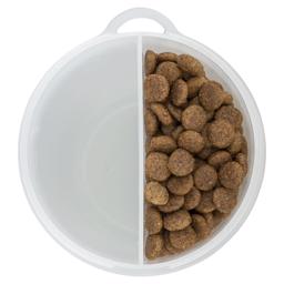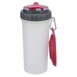 Denna behållare är super smart för dig som ska ha med hunden på utflykt eller till träning. I det ena facket kan det rymmas 350 ml vatten och i det andra facket kan du fylla på med max 350 ml foder eller godbitar.