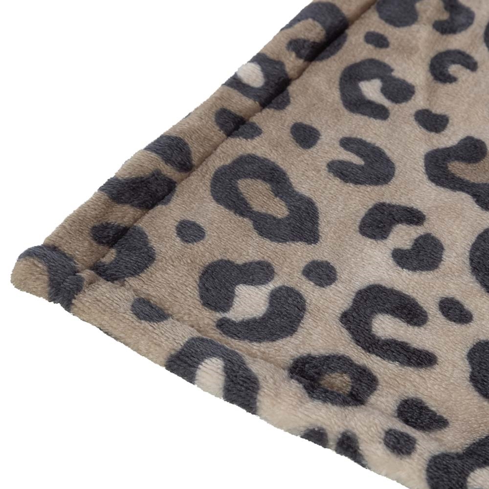 Mjukt och allergivänligt plyschfilt för hundar och katter i elegant leoparddesign.