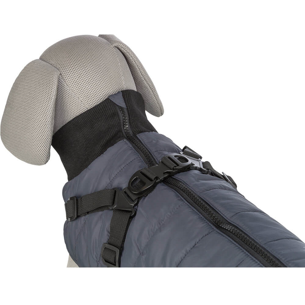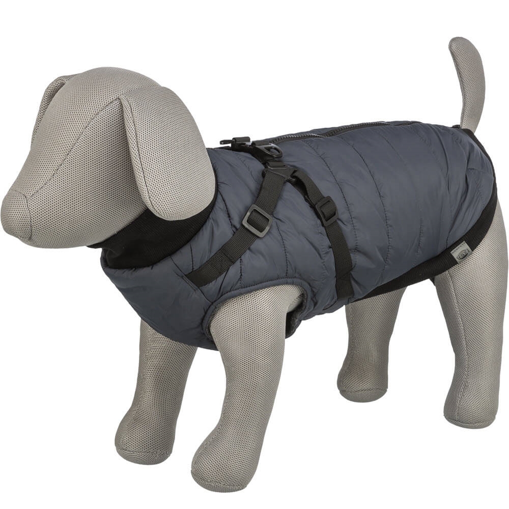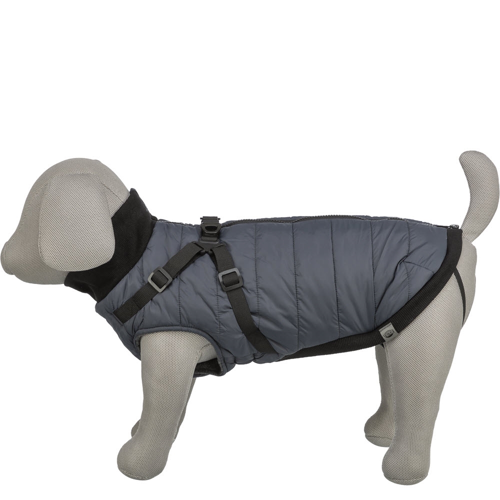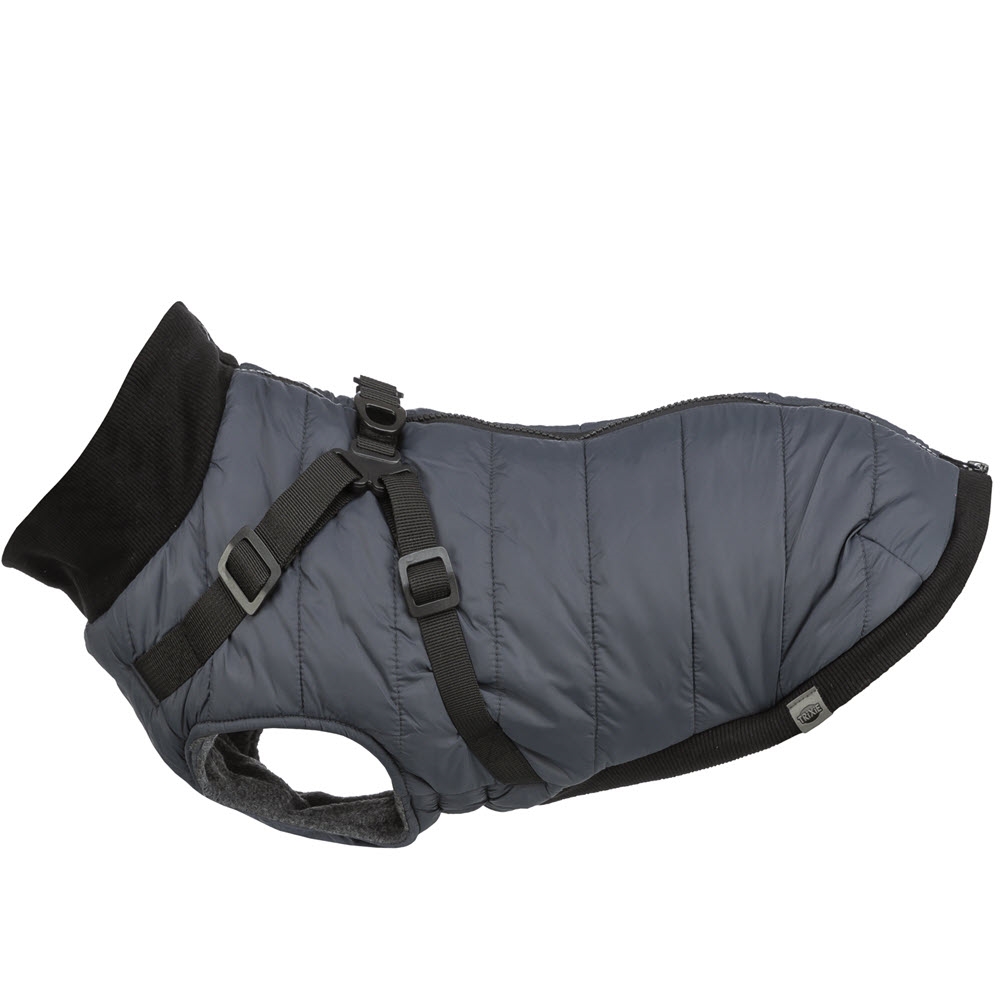 Denna smarta hundjacka är utrustad med en sele på ryggen, så du inte själv behöver sätta på hunden en sele. Jackan är gjord i polyester med invändigt fleecefoder. Jackan är härligt fluffig, med en skön vaddering.