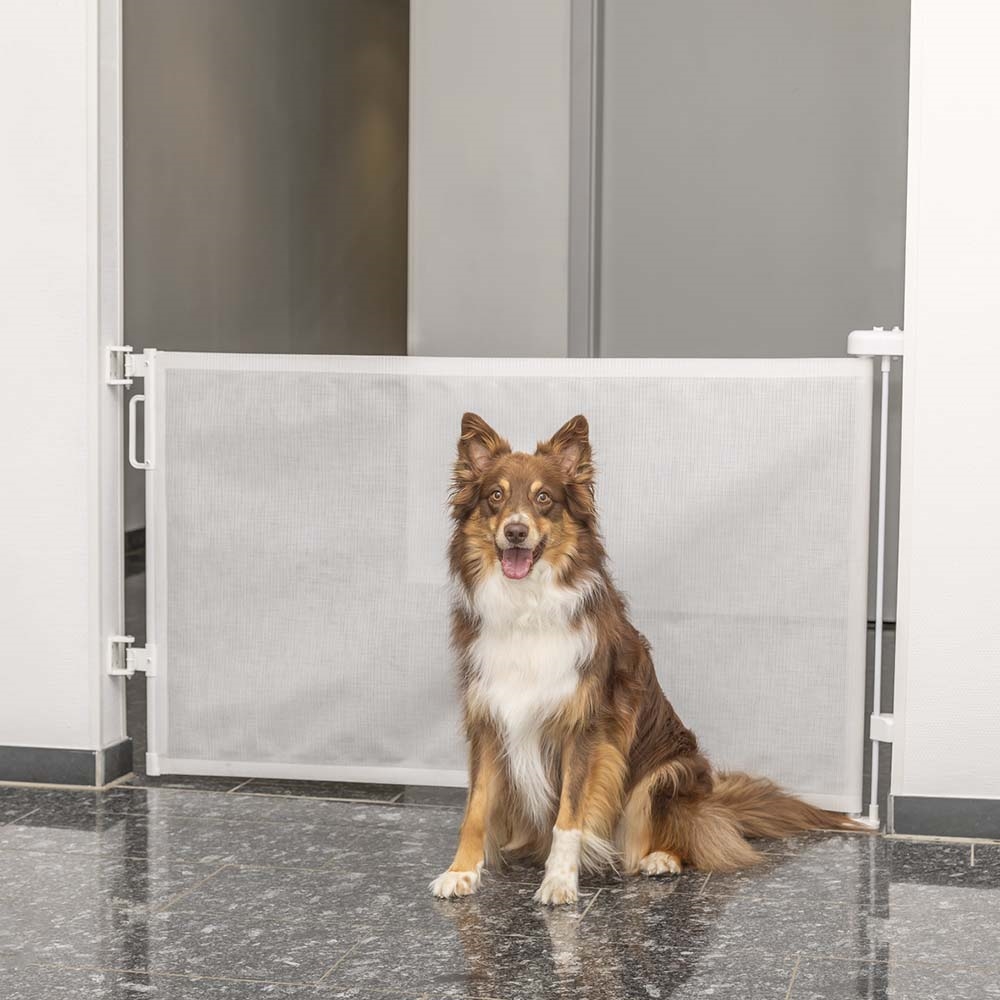 Behöver du stänga av till ett annat rum, så är denna smarta skjutgrind avskärmning precis rätt. Här kan du enkelt dra för grinden för att avskärma ett område. Dock kan hunden lätt, om den verkligen vill, bryta sig under. Speciellt om det är en liten hund eller valp.