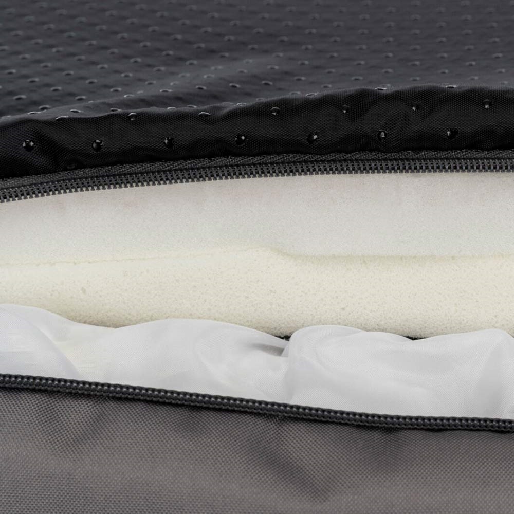 Hundbädd i nylonlook med ortopediska material. En formfast hundbädd med fantastisk liggkomfort.