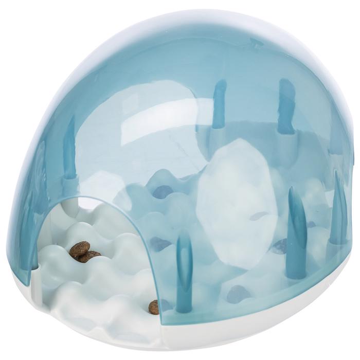 Denna roliga kupol är designad med en vågig botten, så att kattens godbitar kan ligga extra stadigt. Kupolen är designad med 3 åtkomsthål, där katten med tassen kan få tag i de godbitar du fyller i.