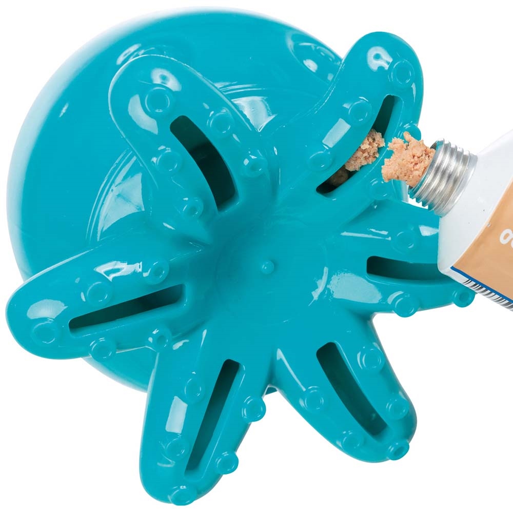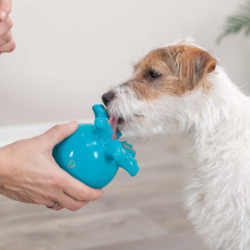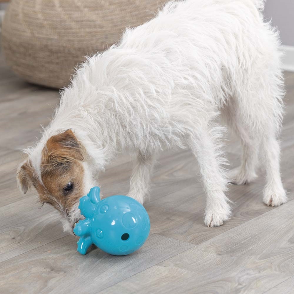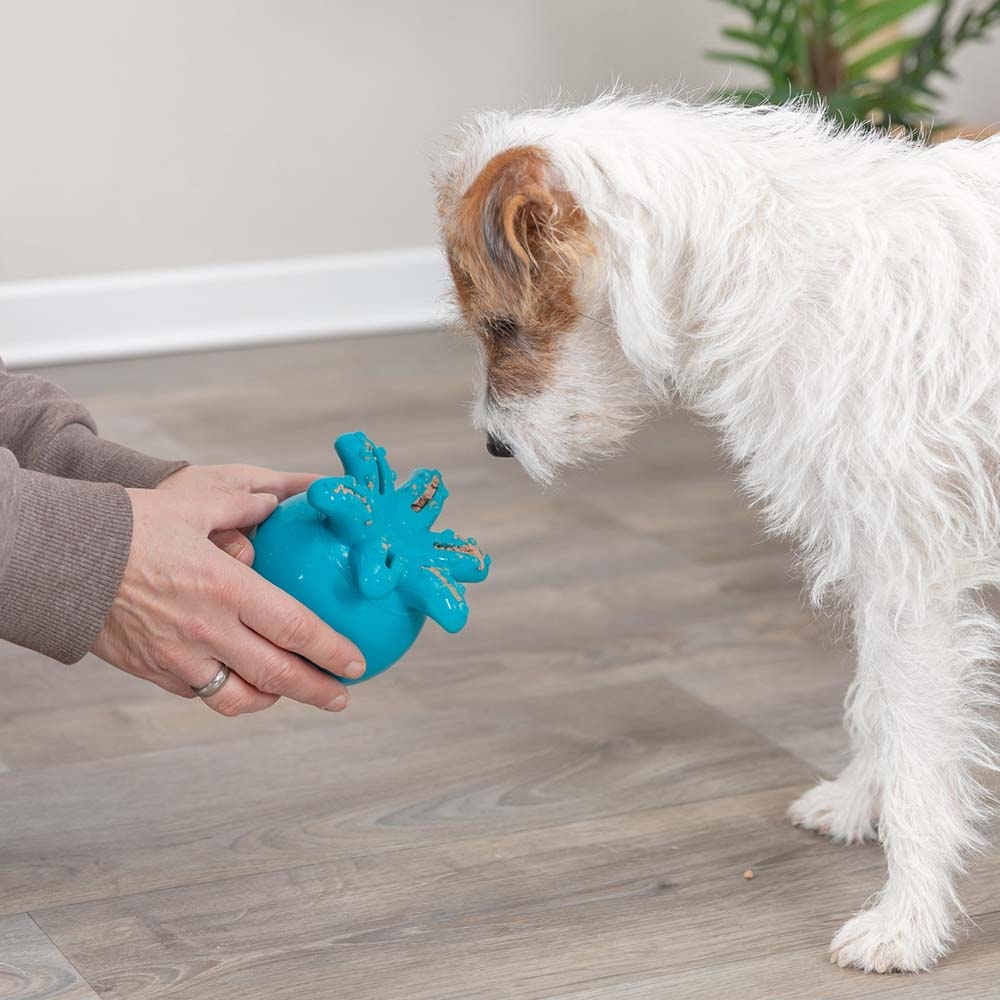 Denna roliga bläckfisk har räfflor i botten som kan fyllas med paté eller runda godbitar för längre aktivering. I bläckfiskens huvud finns ett hål där man kan hälla i godis. Så kan hunden verkligen njuta och spendera tid på att få ut dessa godbitar igen.