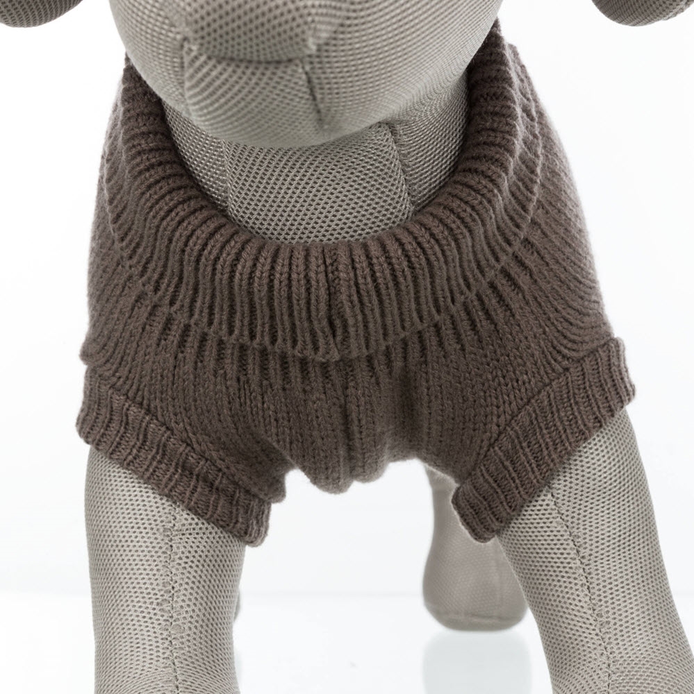 Stickad tröja för hunden i färgen taupe. Välj från strl. 24 cm till strl. 60 cm. Klä din hund varmt för vintern.