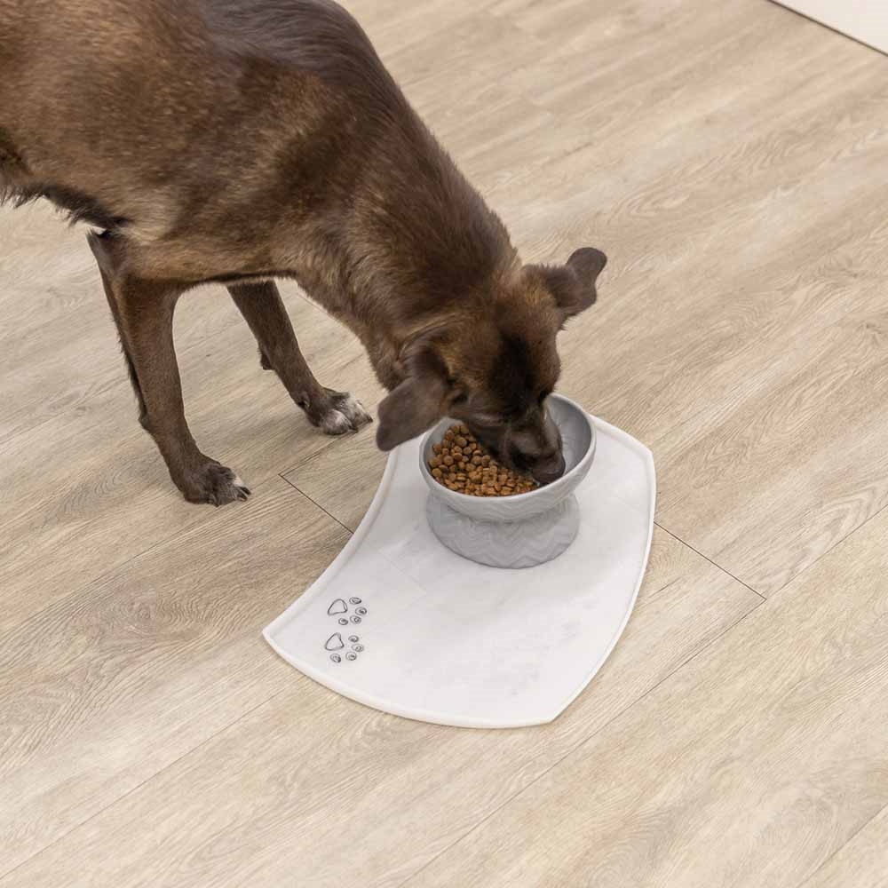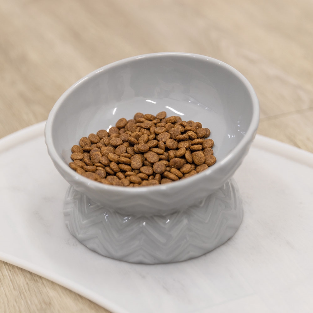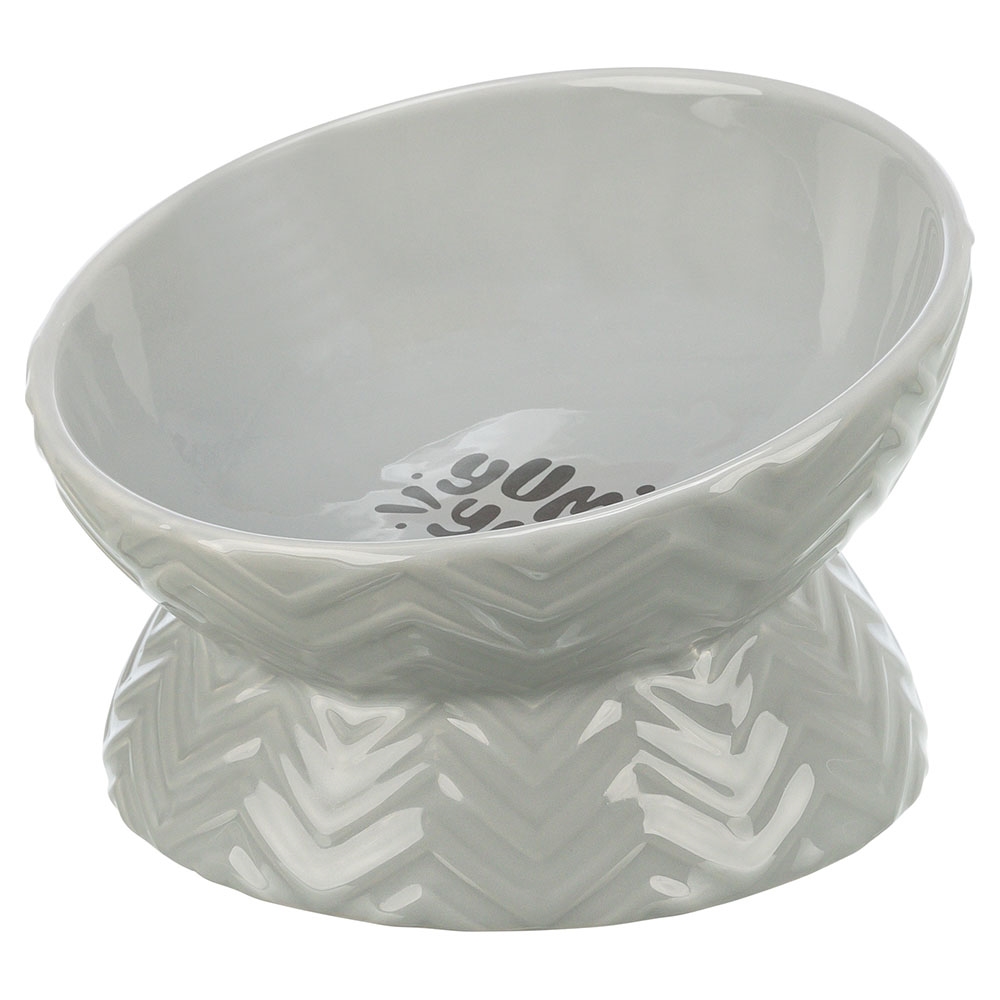 Upphöjd keramisk matskål i grå, som ger din hund en mer bekväm ätställning.