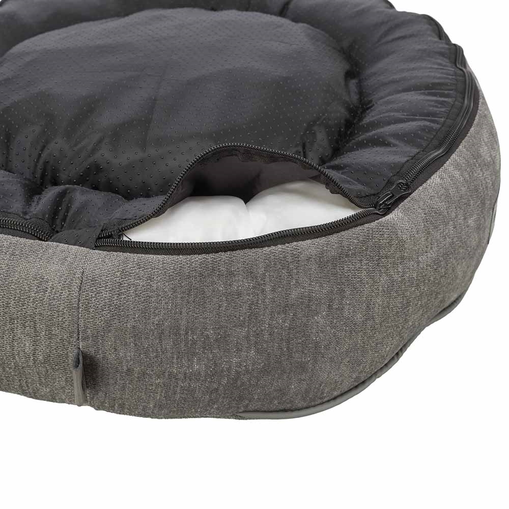 Det vackra överdraget på hundsängen gör att sängen passar in i de flesta hem och enkelt integreras som en del av inredningen. Överdraget kan tas av och tvättas i 40 grader.