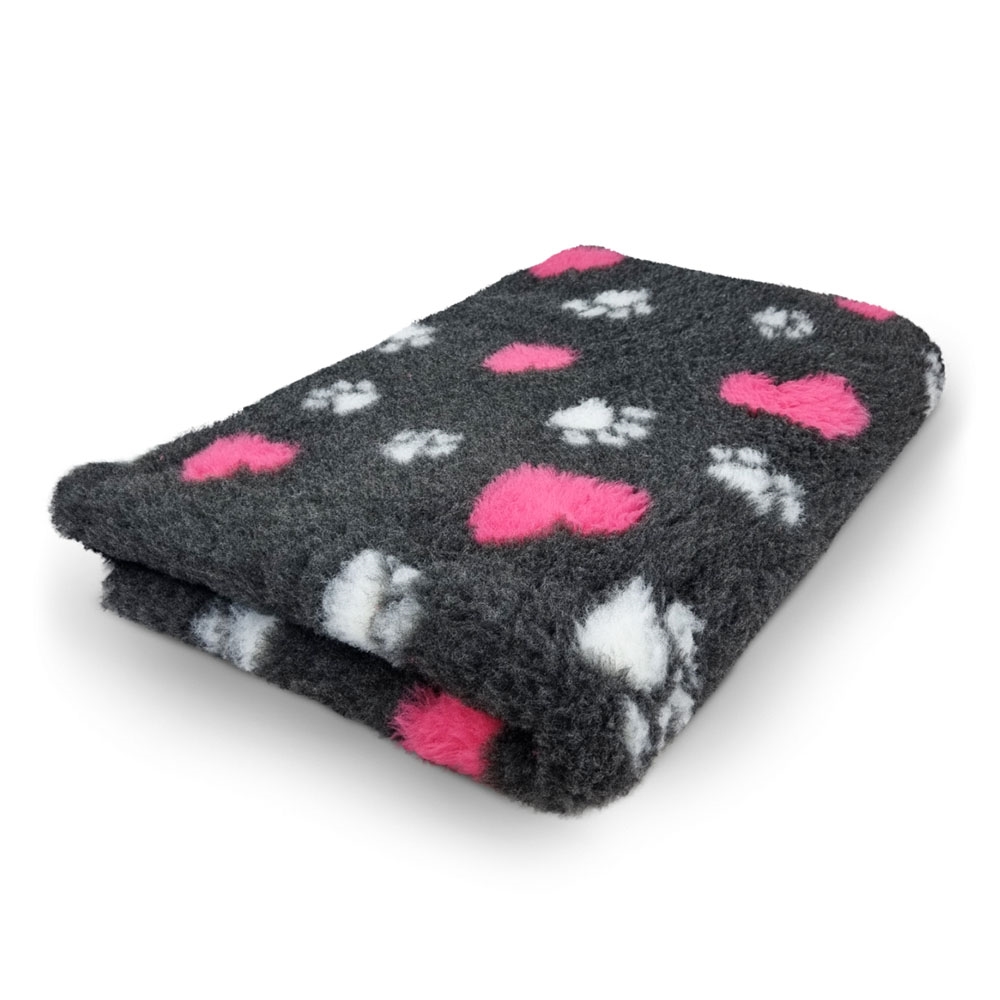 Mer information om Vet Bed Extra Soft Design Grå med Rosa Hjärtan och Vita Tassavtryck 100 x 150 cm