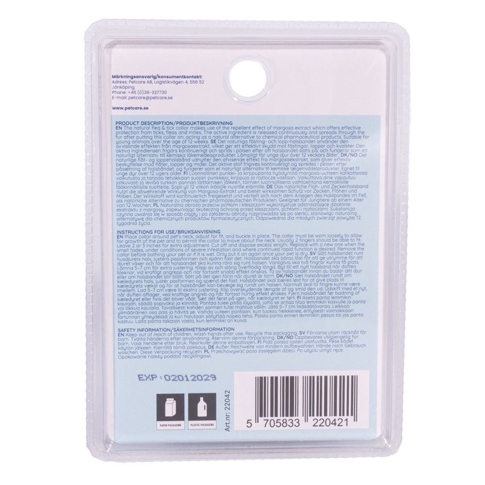 • Sätt på halsbandet och låt det göra jobbet – inga krångliga behandlingar eller upprepade appliceringar.