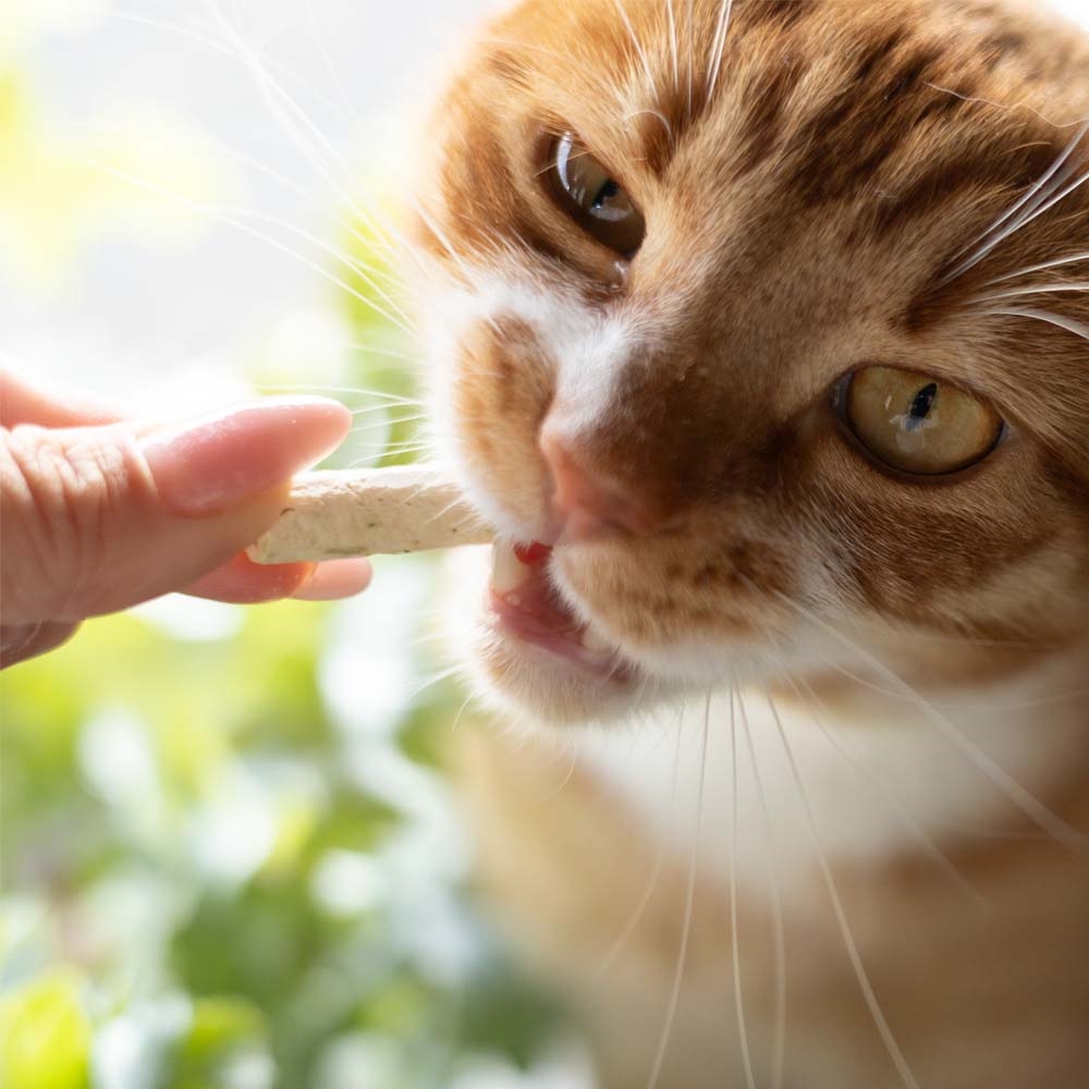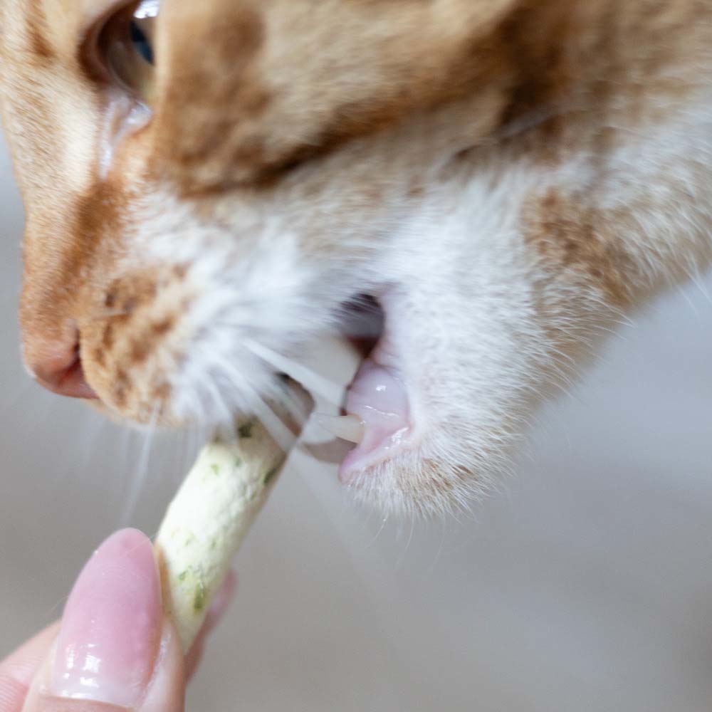 Snacks med kattgräs för bättre matsmältning och bekämpning av hårbollar.