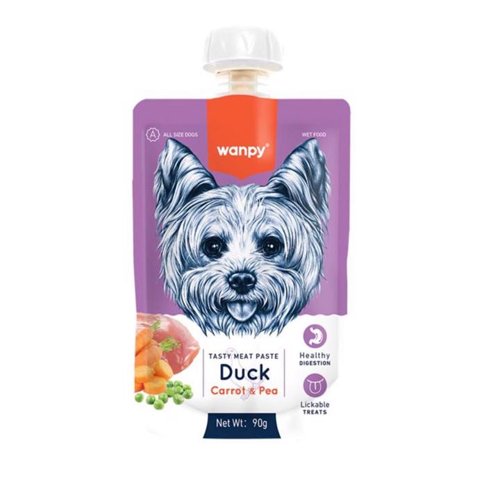 Wanpy Tasty Meat Paste är ett flytande hundfoder med anka och kyckling. Det är en rolig och annorlunda kräm-puré designad speciellt för hundar för att ge dem ett välsmakande och hälsosamt foder. Anka och kyckling är värdefulla källor till lättsmält animaliskt protein med en rik sammansättning av vitaminer och aminosyror.