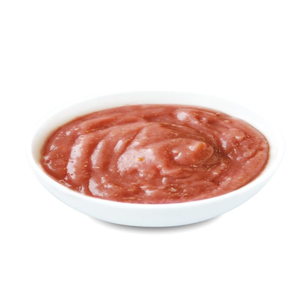 En flytande kräm-puré pasta för hunden med anka och kyckling.