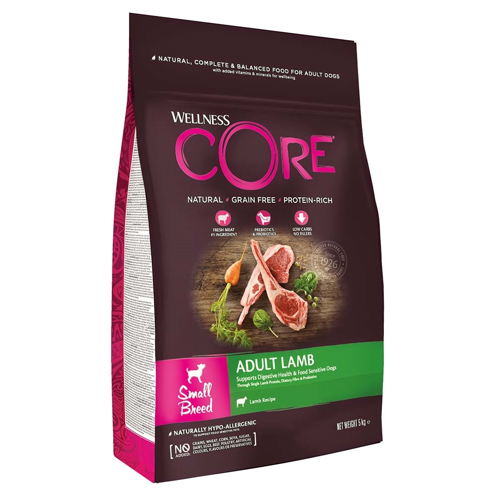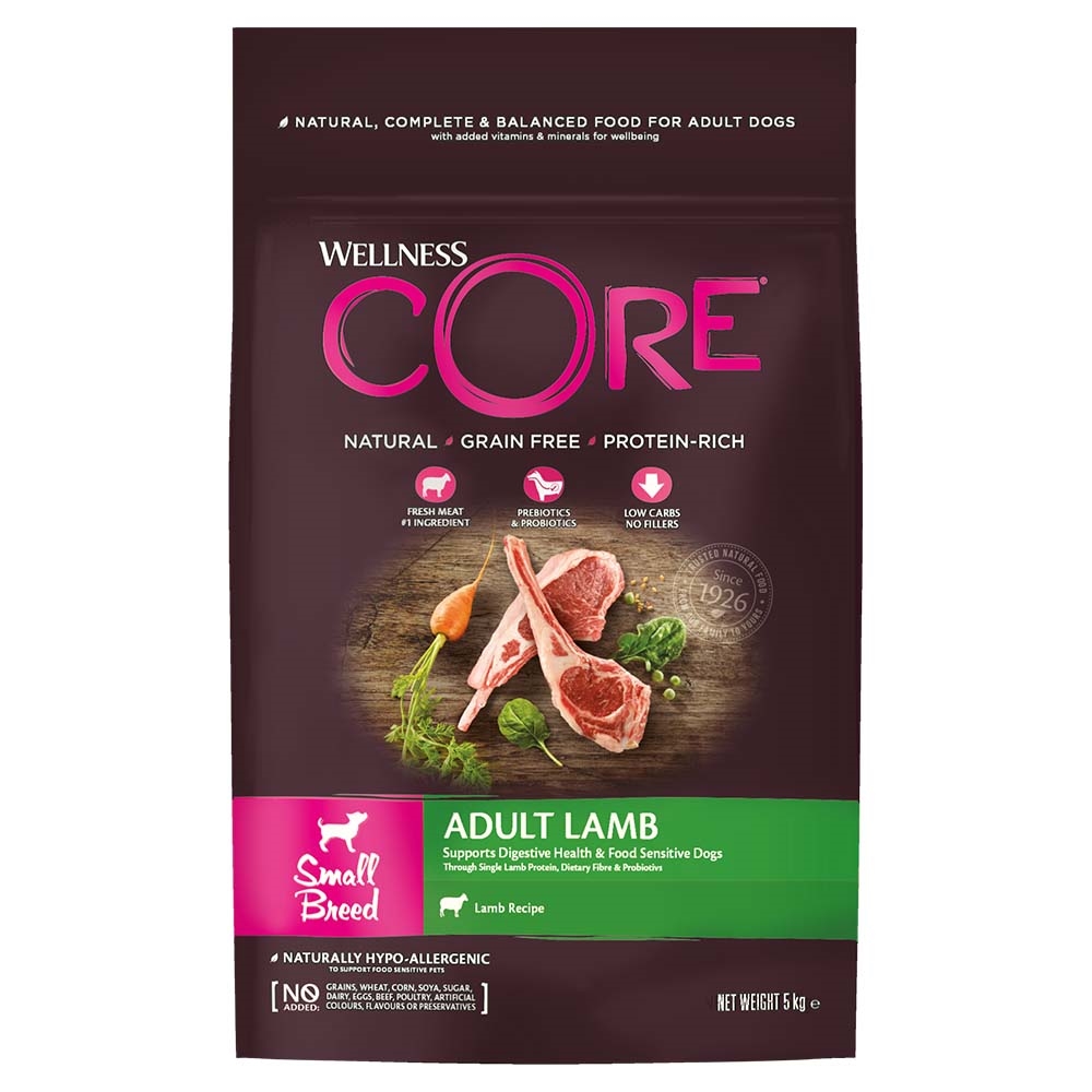 Detta kvalitetsfoder för vuxna hundar från Wellness Core är lämpligt för små raser. Fodret är särskilt utvecklat för att stödja matsmältningssystemet hos hundar som är foderkänsliga, genom att endast använda en proteinkälla, nämligen lamm.