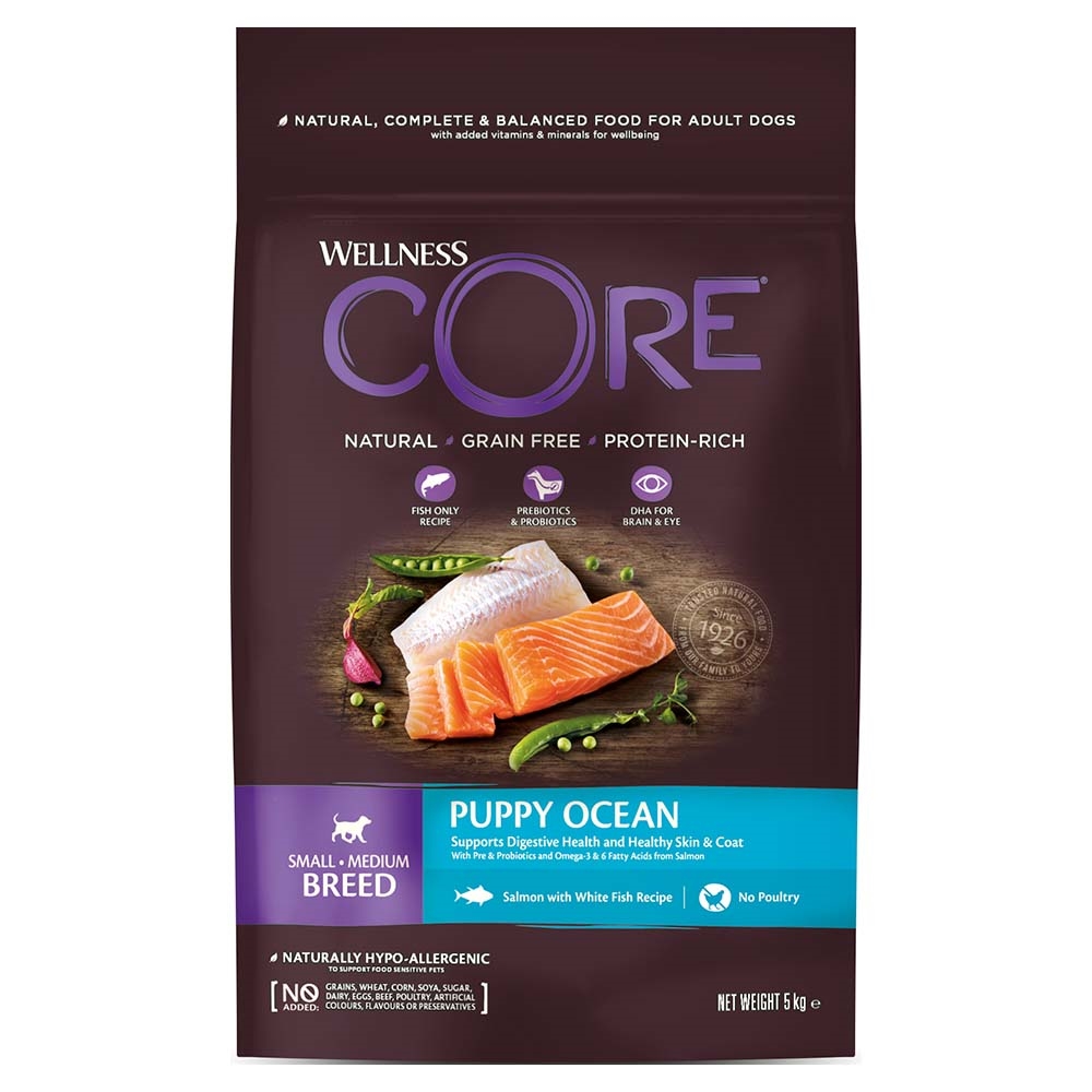 Detta kvalitetsvalpfoder från Wellness Core passar valpar av små och medelstora raser. Valpfodret är utformat för att stödja matsmältningssystemet, samt en frisk hud och glänsande päls med omega-3- och 6-fettsyror från lax.