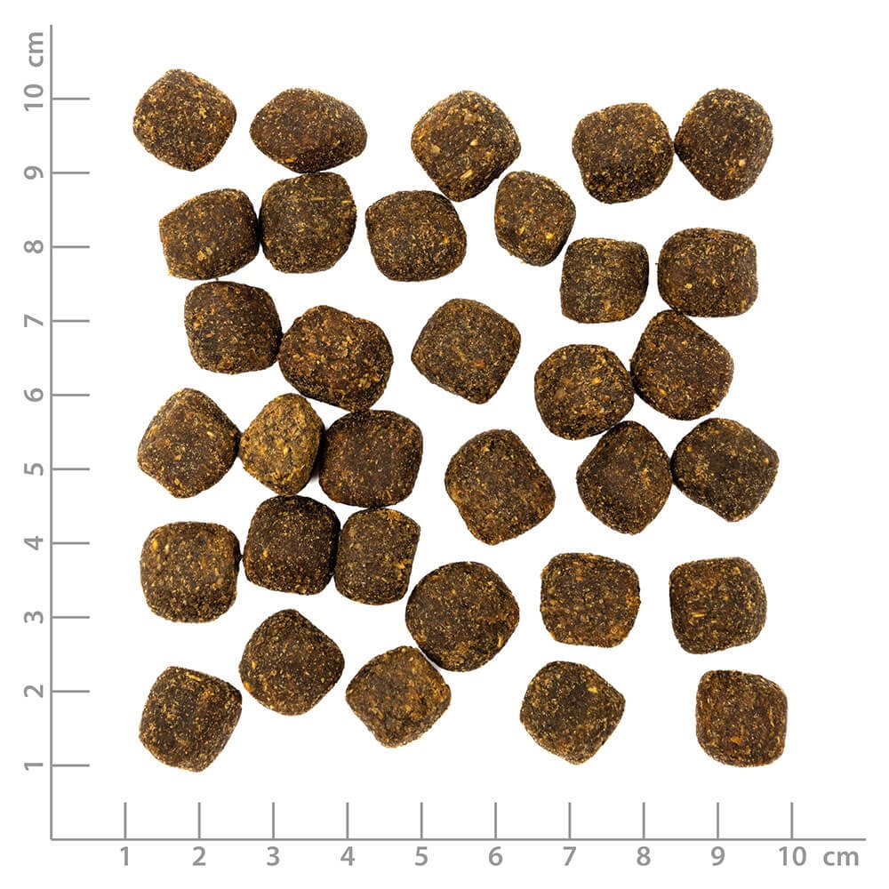 Analys: Råprotein 20% Råfett 13%, råaska 6%, råfiber 3%, fuktighet 18%.