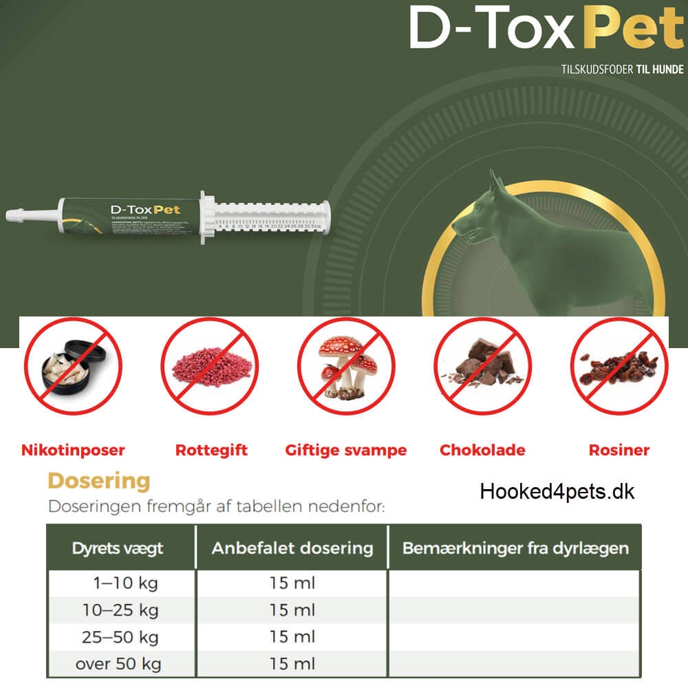 Kom ihåg! D-Tox Pet är inte en ersättning för professionell hjälp, så kontakta omedelbart din veterinär vid misstanke om förgiftning!