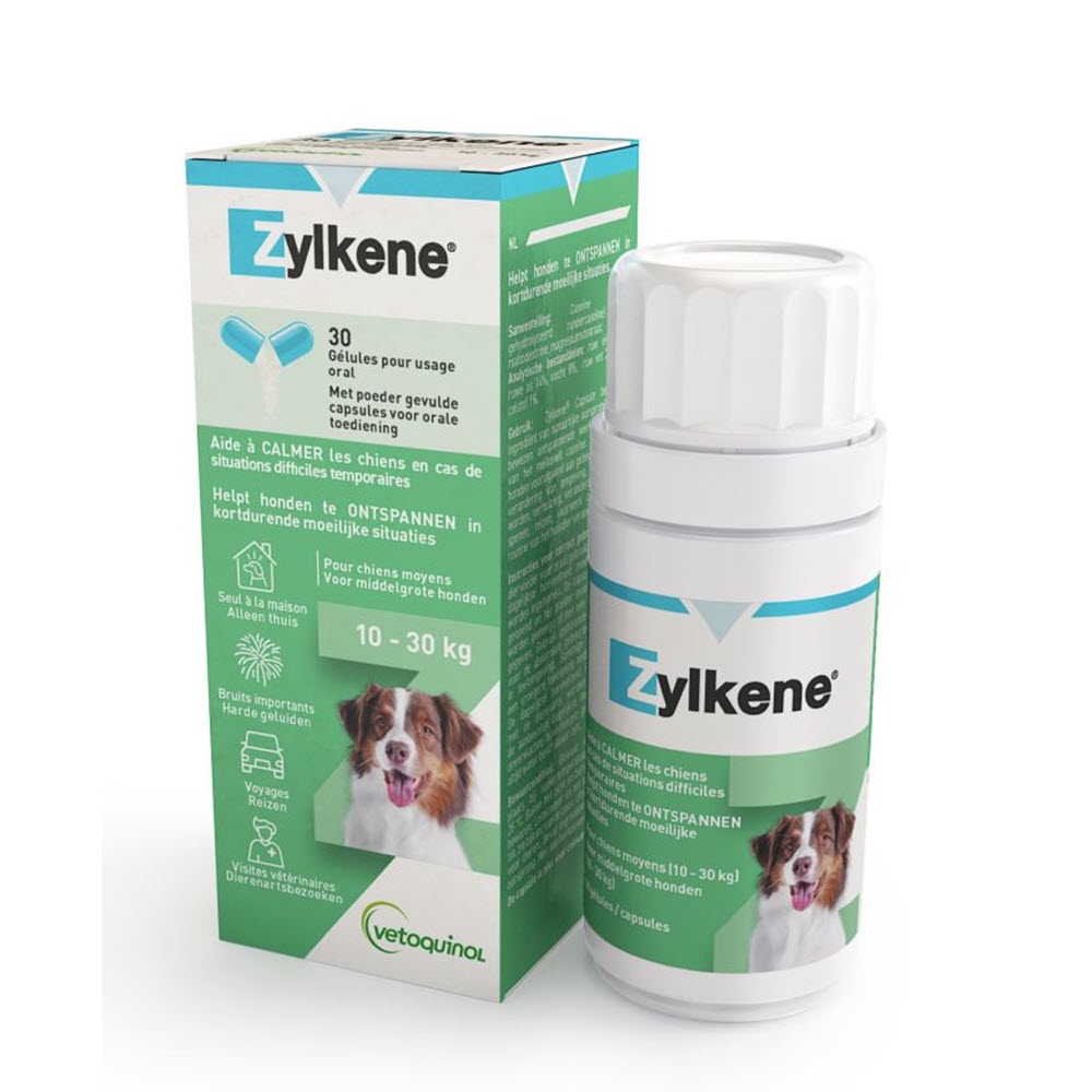Zylkene är ett naturligt lugnande produkt för hunden under perioder då hunden blir otrygg eller rädd. Zylkene är inte receptbelagt.